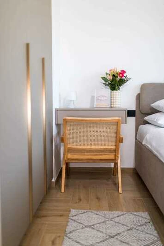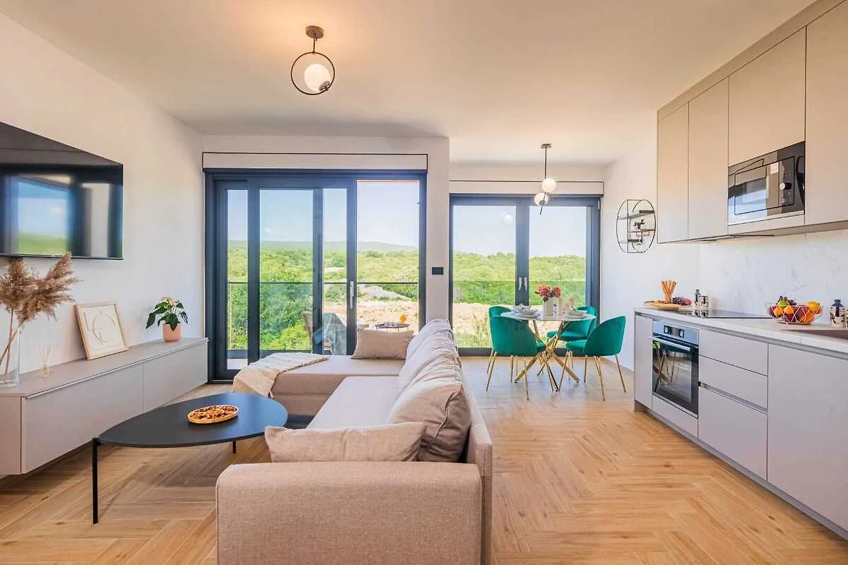 Dieses luxuriöse Apartment in ruhiger Lage in Krk ist die perfekte Wahl für einen Urlaub mit bis zu vier Personen. Es befindet sich im zweiten Stock eines Hauses und bietet einen wunderschönen Blick ins Grüne. Das Stadtzentrum und das Meer sind nur 800 Meter entfernt. Das Apartment verfügt über eine voll ausgestattete Küche, ein geräumiges Wohnzimmer zum Entspannen, eine Terrasse mit herrlichem Ausblick, zwei Schlafzimmer mit Doppelbetten, ein Badezimmer mit Dusche und ein separates WC. Gäste können den Gemeinschaftspool mit Liegestühlen nutzen – ideal zum Sonnenbaden und Entspannen. Parkplätze stehen auf dem Grundstück zur Verfügung. Dieses Apartment ist perfekt für alle, die einen ruhigen Rückzugsort suchen und dennoch die Sehenswürdigkeiten von Krk schnell erreichen möchten.