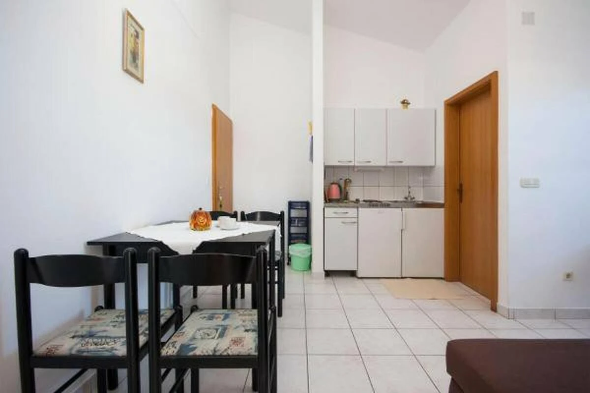 Gelegen in der malerischen Küstenstadt Šibenik-Brodarica, bietet dieser charmante Meeresrückzugsort einen friedlichen und entspannenden Urlaub. Mit einer hervorragenden Lage nur 150 Meter vom Sand- und Felsenstrand entfernt, ist diese komfortable Ferienwohnung die perfekte Basis, um die wunderschöne dalmatinische Küste zu erkunden.