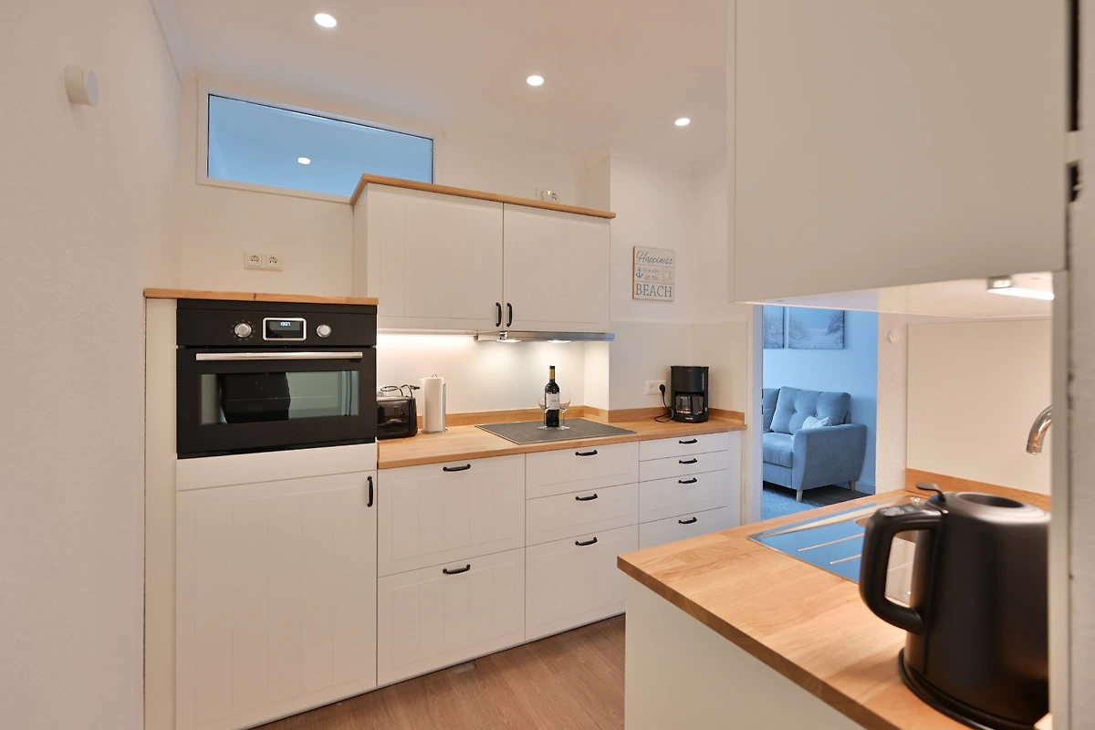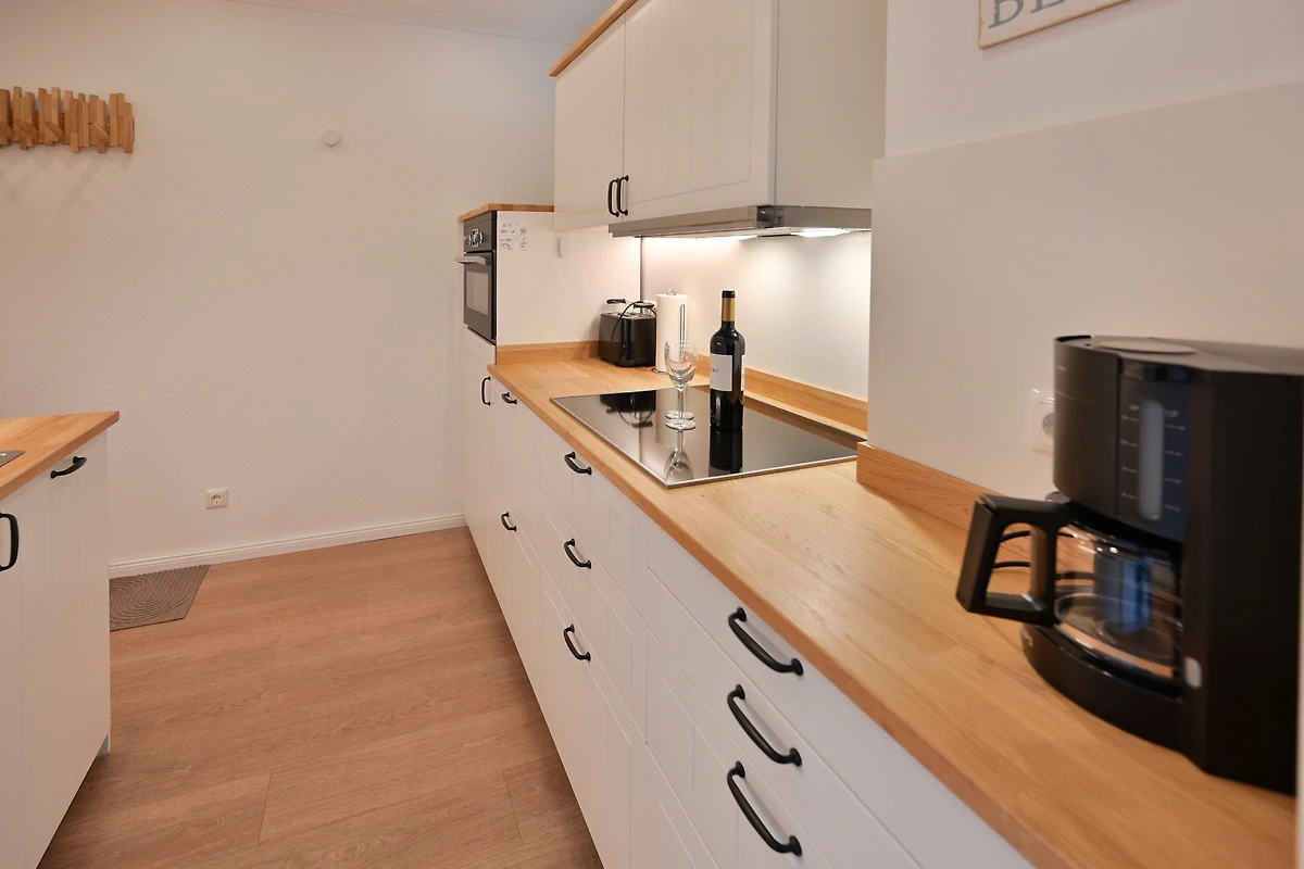 Die im Flur integrierte moderne Einbauküche ist bestens ausgestattet und lässt keine Wünsche offen.
