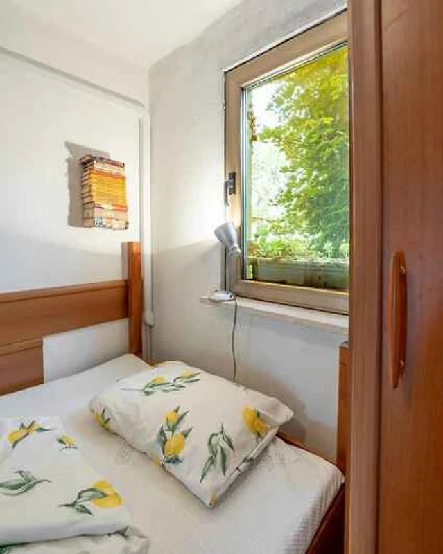 Zambratija. Die Ferienwohnung befindet sich auf einem 180 qm grossen Gartengrundstück. Die Zufahrt erfolgt über eine Nebenstrasse. Parkplatz auf dem Grundstück.