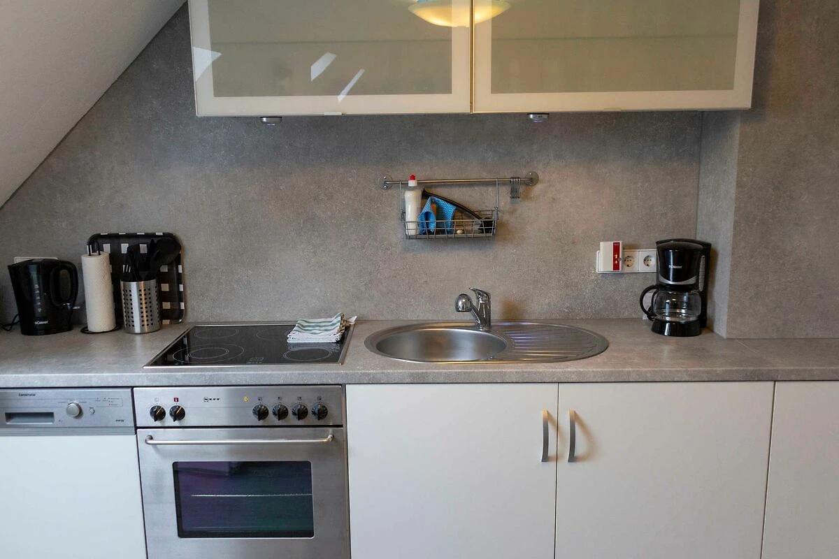 Neben der modernen und sehr behaglichen Einrichtung befindet sich im Keller eine moderne Waschküche mit Waschmaschine und Trockner. Unser Apartment Rosa liegt auf dem Grundstück einer ehemaligen Spedition. Dem Gast steht reichlich Parkraum zur Verfügung.