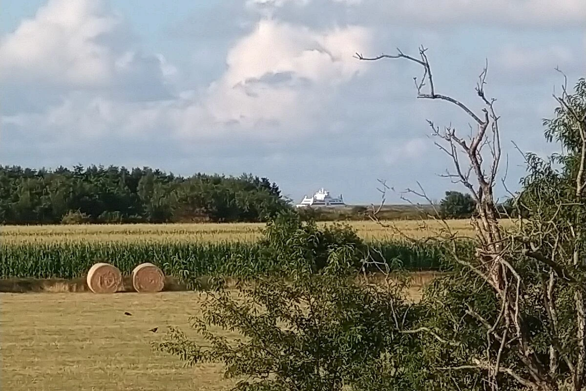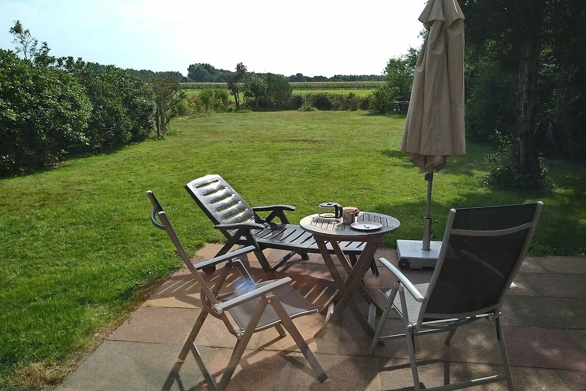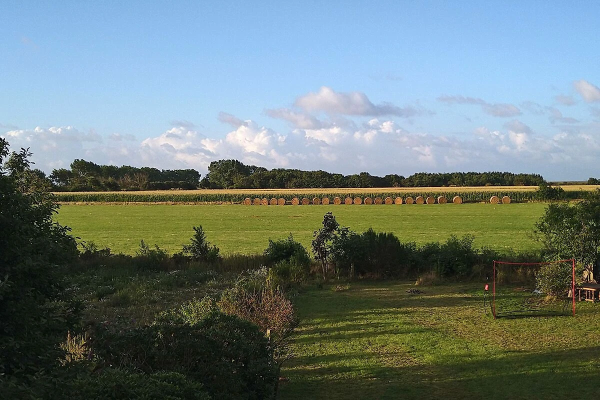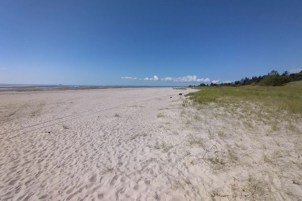 Das Haus befindet sich in einer Sackgasse in der letzten Häuserreihe zum Strand. Der Garten ist in Richtung Süden zum Meer hin ausgerichtet. Hinter dem Grundstück befinden sich Felder bis zum Deich - und dahinter kommt gleich der Strand und das Meer. Das Grundstück ist somit sehr ruhig gelegen. Bei Hochwasser lassen sich aus dem Zimmer im Obergeschoss vorbeifahrende Schiffe auf der Nordsee beobachten.