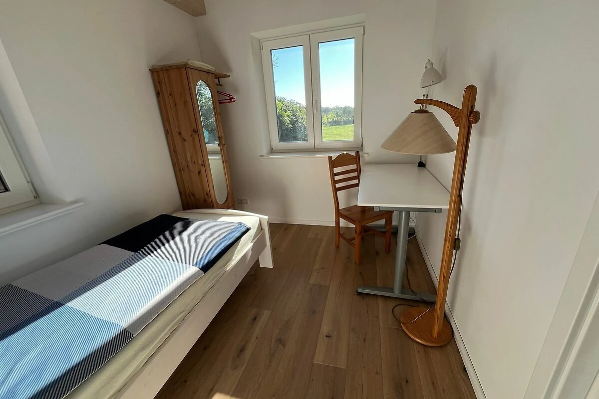 Im Erdgeschoss befinden sich Wohnzimmer mit Kamin, Küche, Bad sowie ein Einzelzimmer.