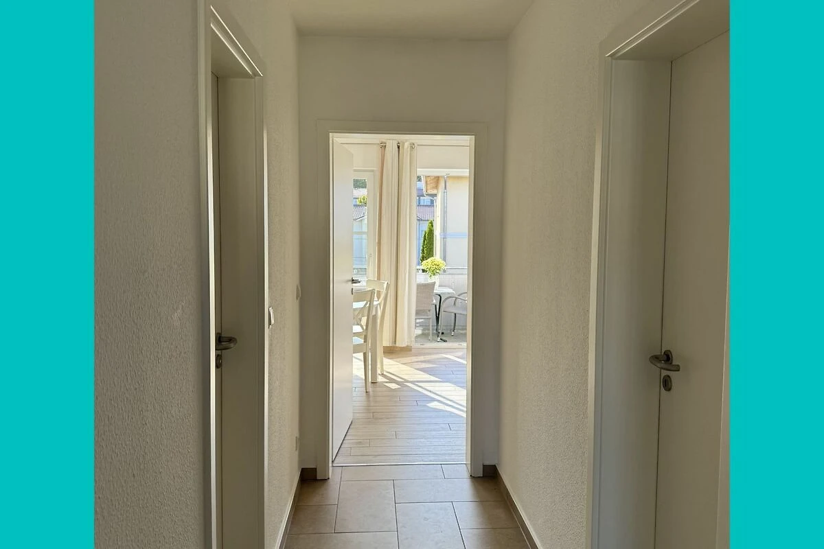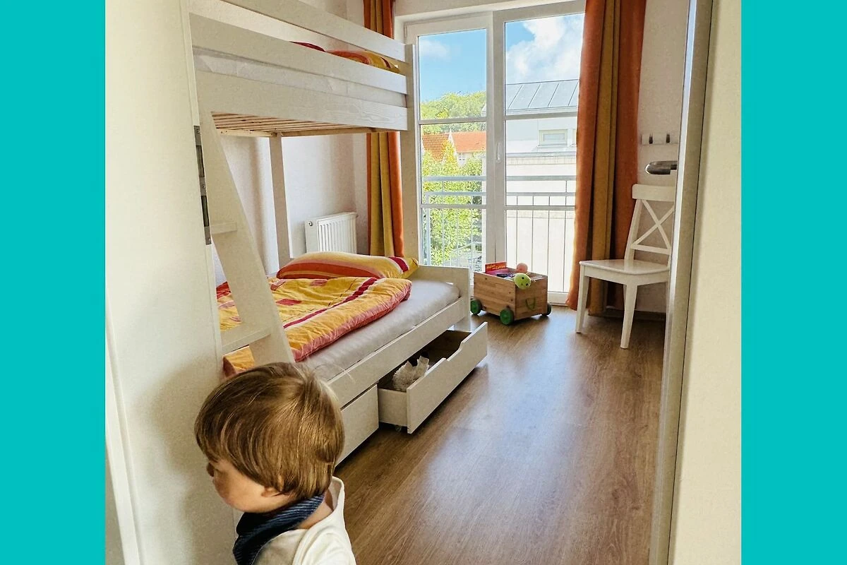 3-Zimmer-Ferienwohnung mit 2 Schlafzimmern, Wohnzimmer mit offener Küche und Balkonzugang sowie Bad mit Dusche und Waschmaschine. Ein gemeinschaftlicher Fahrradkeller, ein Fahrrad- und E-Bike-Abstellplatz (im Keller) sowie ein eigener Pkw-Stellplatz runden das Angebot ab. Geeignet für bis zu 4 Personen.