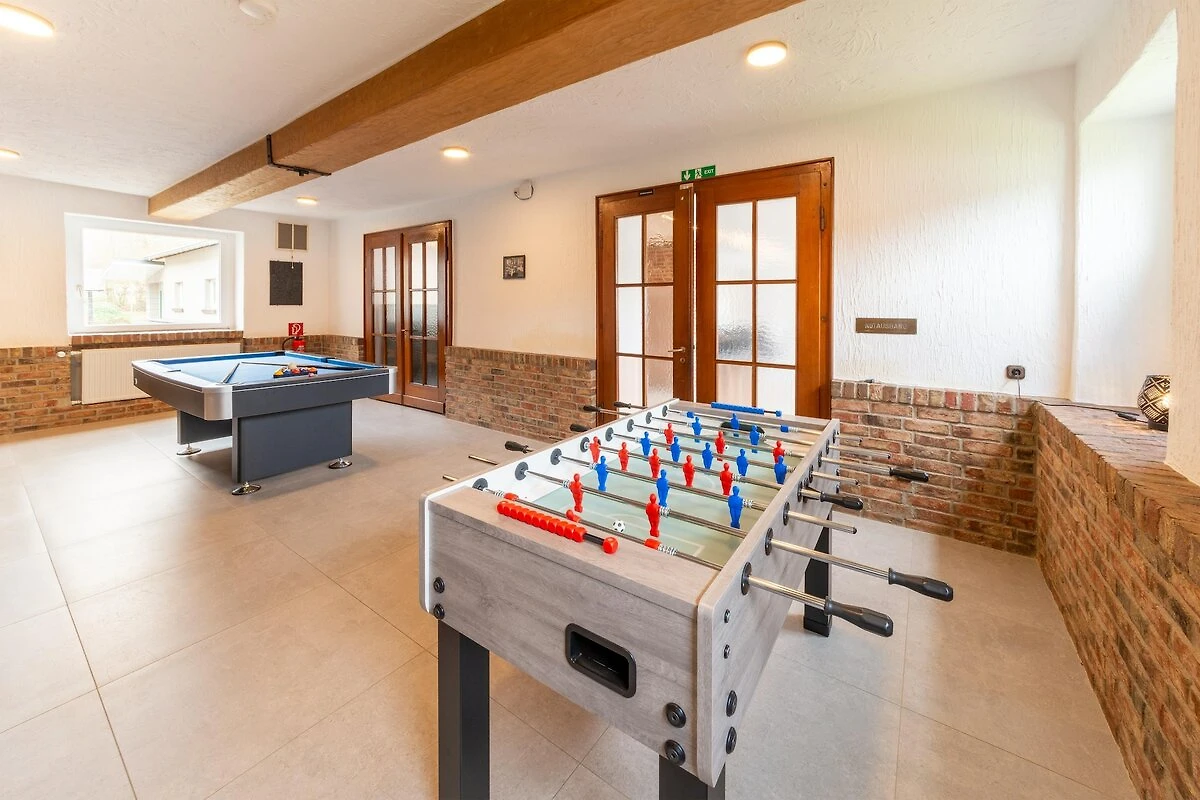 Dieses ehemalige Hotel mit 20 Zimmern befindet sich im schönen Nationalpark der Eifel im Nähe von Monschau und bietet Platz an bis zu 50 Gäste. Das Ferienhaus ist ideal für eine große Gruppe, wie eine Familie oder eine Gruppe von Freunden. Es gibt eine Bar mit Lounge, einen großen Speisesaal, eine professionelle Küche und einen Aufenthaltsraum mit Billard und Fußball. Es verfügt über einen privaten Garten, eine Terrasse und einen umzäunten Hof, wo Sie Ihren eigenen Gasgrill benutzen können. Ab Juni 2024 steht Ihnen eine Infrarotsauna zur Verfügung, in der Sie sich vollkommen entspannen und Ihren Aufenthalt genießen können.