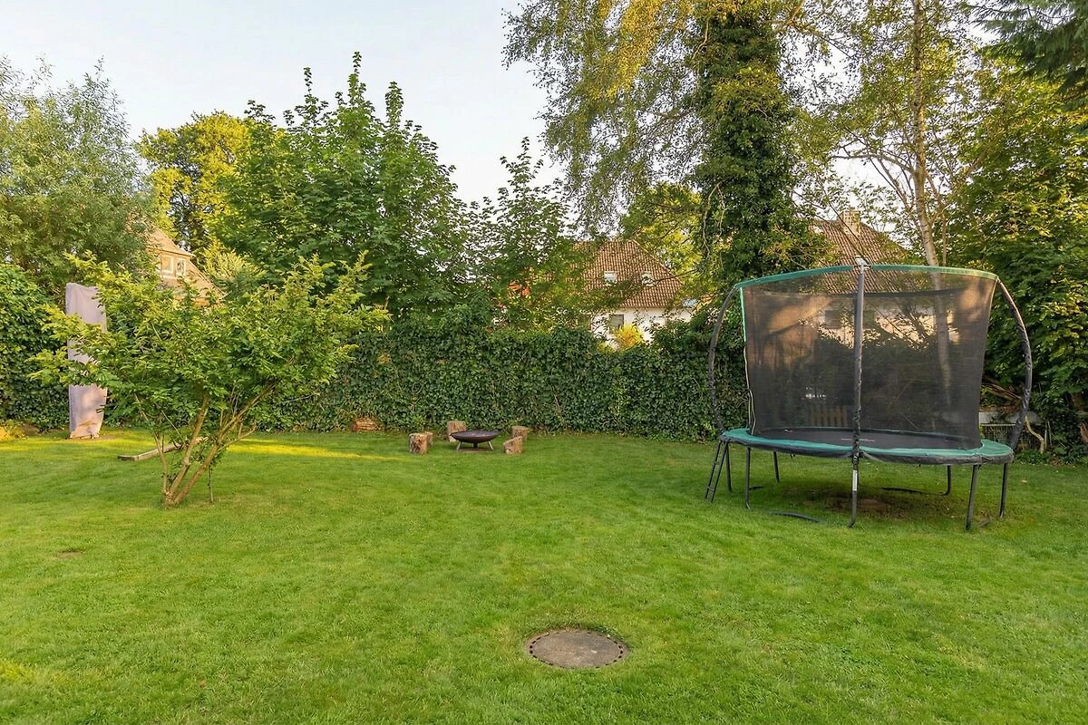 Draußen lädt ein Garten mit Terrasse, Gartenmöbeln, Liegewiese, Sonnenliegen und Sonnenschirm zum Verweilen ein. Für gesellige Stunden stehen Grill, Feuerstelle und ein Windschutz zur Verfügung. Im Außenbereich stehen unseren Gästen ein Basketballkorb sowie ein Trampolin auf eigene Verantwortung zur Verfügung.