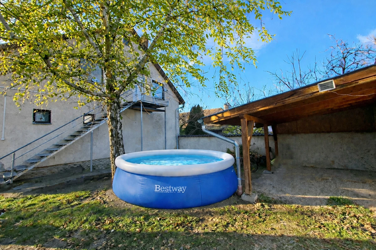 In ländlicher Umgebung, unweit des Plattensees, befindet sich eine Wohnung im Obergeschoss eines Einfamilienhauses für 4 Personen mit Klimaanlage, Internet und einem aufgestelltem Pool.