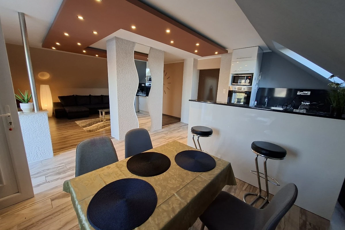 Die Ferienwohnung befindet sich im Obergeschoss eines Einfamilienhauses und bietet komfortable Unterkunft für bis zu 4 Personen. Die helle, freundliche Wohnung eignet sich hervorragend für Familien und Paare. Im gepflegten Garten sorgt ein aufgestellter Außenpool an heißen Sommertagen für angenehme Erfrischung.