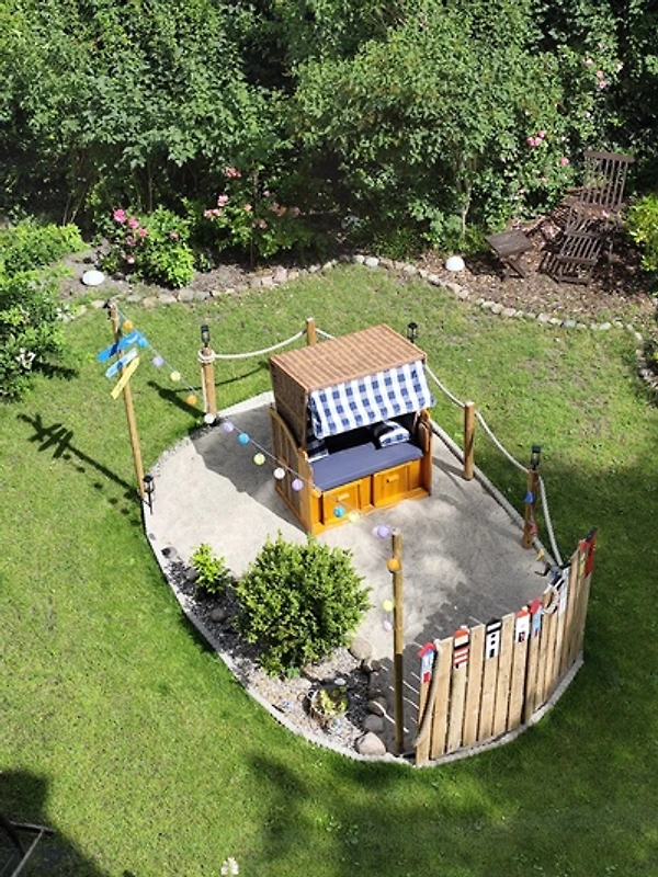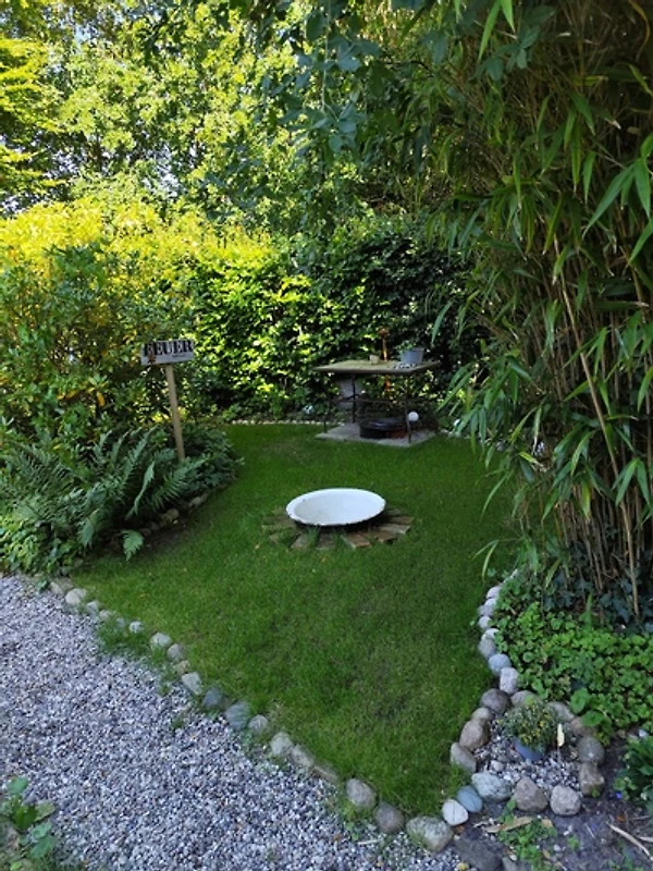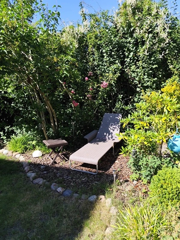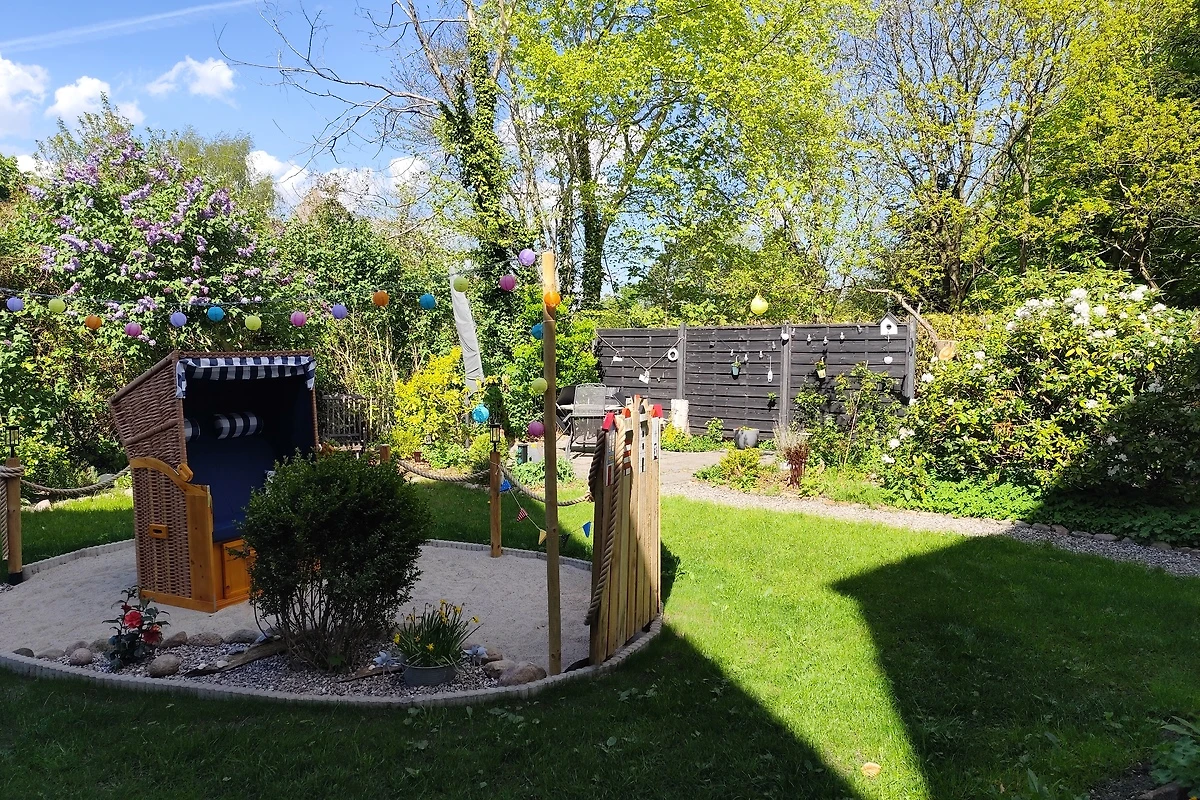 Die Wohnung bietet Platz für bis zu 4 Gäste und verfügt über zwei Schlafzimmer sowie ein Badezimmer. Die voll ausgestattete Küche mit Spülmaschine, Mikrowelle, Wasserkocher und Kaffeemaschine lädt zum gemeinsamen Kochen ein. Im Essbereich und auf der sonnigen Terrasse mit Gartenmöbeln lässt sich jede Mahlzeit genießen – ein BBQ-Gas-Grill steht ebenfalls bereit. Der gepflegte Garten mit einer sonnigen und einer überdachten Terrasse, einem Strandkorb, blühenden Sträuchern, duftenden Blumen und schattigen Plätzen bietet Erholung pur und ist ideal für entspannte Stunden im Freien.