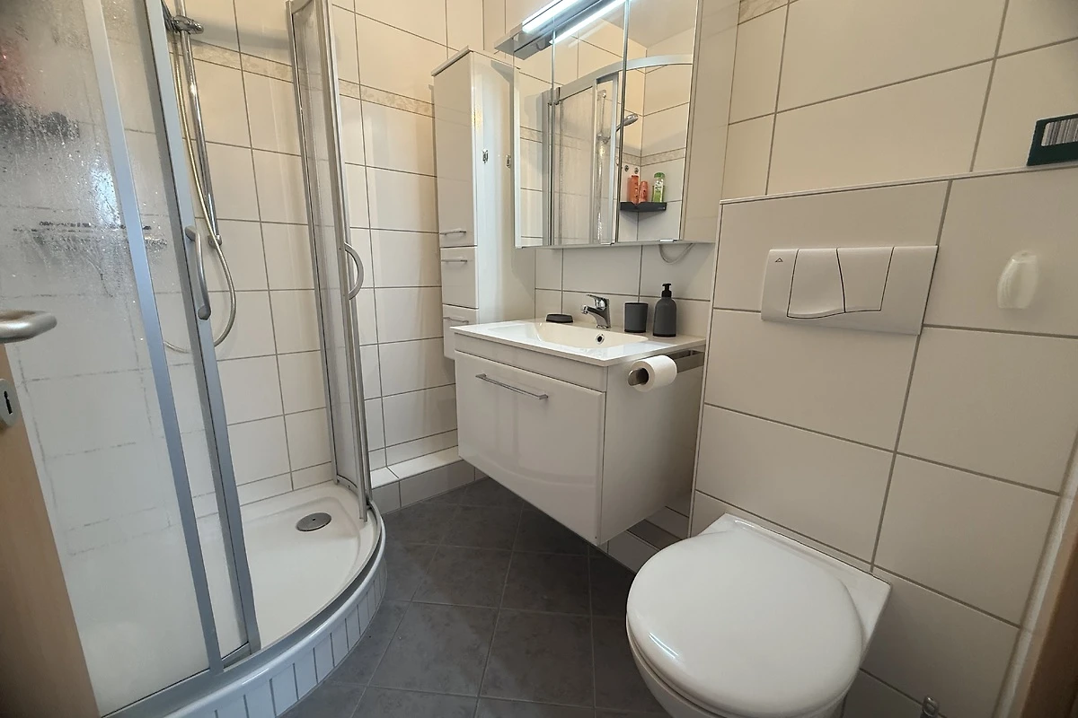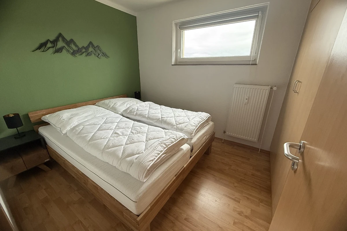 Im Schlafzimmer erwartet Sie ein Rückzugsort der Ruhe. Das Doppelbett verspricht erholsame Nächte, der Kleiderschrank bietet Platz für alles, was Sie brauchen. Das moderne Bad mit Dusche ist hell, klar und praktisch – ideal, um sich frisch und gestärkt für einen neuen Tag voller Abenteuer im Harz zu fühlen.