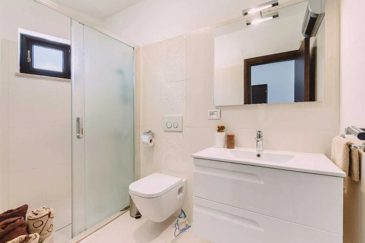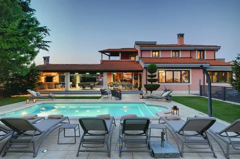 Villa Ines liegt ganz in der Nähe von Pula und nur 2 km von den ersten Stränden entfernt. Eine kurze Fahrt bringt Sie nach Fažana , einer kleinen Stadt, von der aus Sie mit einem Boot die Brijuni-Inseln und den bekannten Nationalpark besuchen können. Pula bietet eine Vielzahl von Aktivitäten, von Sportanlagen, Bars, Restaurants und Nachtclubs bis hin zu organisierten Ausflügen. Im Erdgeschoss befinden sich ein Schlafzimmer , ein Badezimmer , eine voll ausgestattete Küche mit Essbereich und ein Wohnzimmer . Es besteht direkter Zugang zum grünen Garten mit privatem Pool (auf Anfrage beheizt) und Essbereich im Freien . Im Obergeschoss befinden sich 2 Schlafzimmer mit Doppelbetten , ein Schlafzimmer mit 2 Einzelbetten und ein weiteres Schlafzimmer mit Doppelbett und eigenem Bad . Alle Schlafzimmer sind klimatisiert und verfügen über Satellitenfernsehen . Für mehr Spass am Abend stehen Ihnen Tischfussball , Darts und ein Billardtisch zur Verfügung, und für die Kleinsten gibt es einen kleinen Spielplatz . Poolheizung auf Anfrage 200 EUR/Woche.