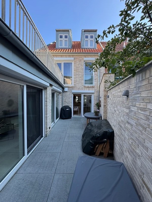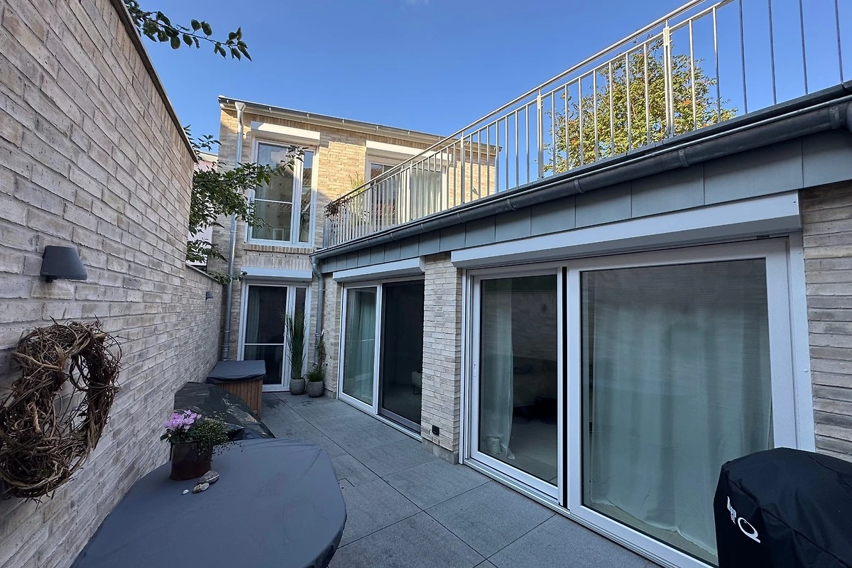 Von hier aus öffnet sich der Weg in den geschützten Innenhof - ein stiller Ort zum Durchatmen. Teakholzmöbel, weiches Licht und ein Hauch von Meeresluft schaffen ein mediterranes Flair im Herzen der Stadt. An Sommerabenden verschwimmen Innen- und Aussenraum zu einer harmonischen Einheit - ein Ort, an dem die Zeit stillzustehen scheint.