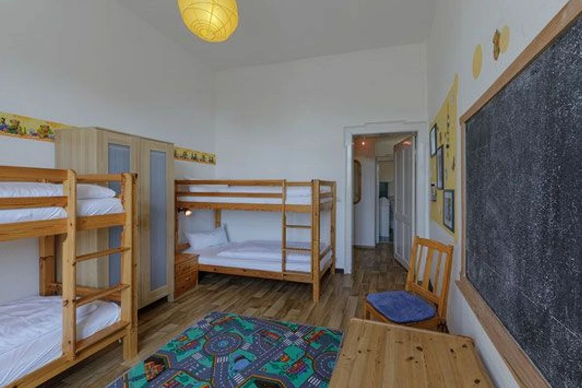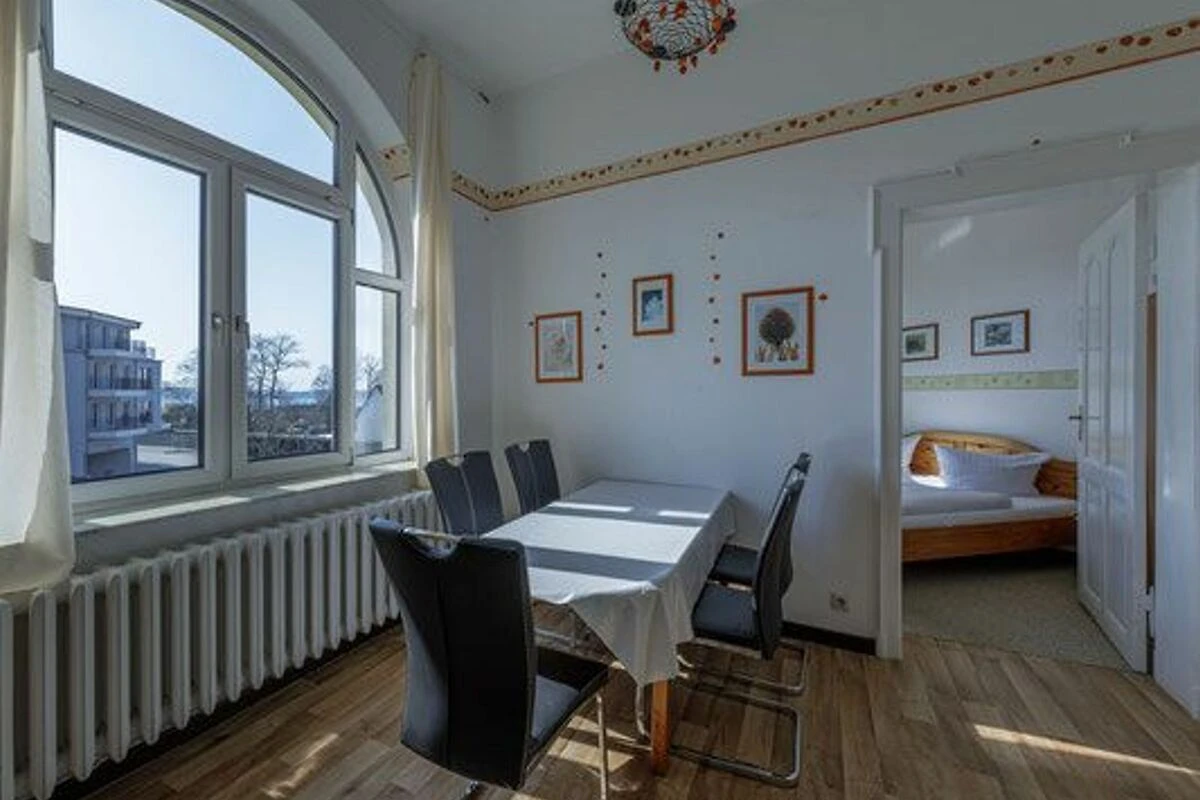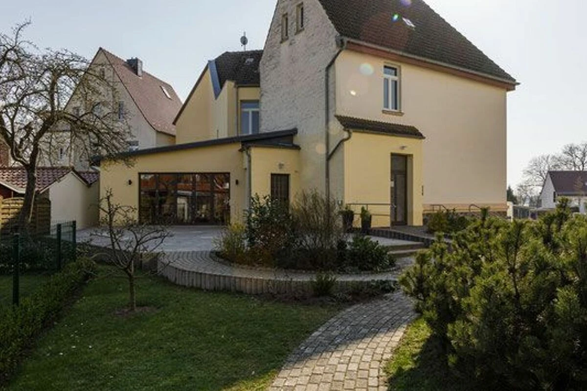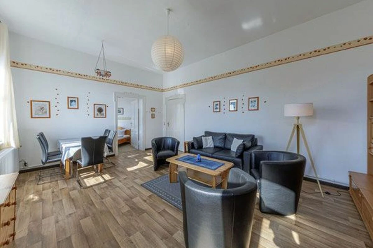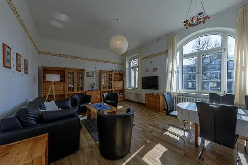 Die grosszügige 80 Quadratmeter grosse Ferienwohnung für bis zu 6 Personen befindet sich in Waren (Müritz), im Gemeindehaus der Evangelisch-Freikirchlichen Gemeinde.