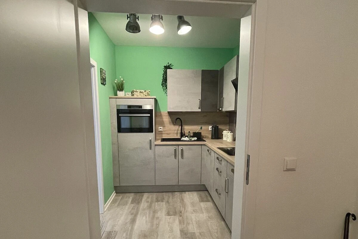 Entdecken Sie die charmante Ferienwohnung Spatzennest im Haus Delphinen im Herzen von Lübben. Mit ihrer zentralen Lage geniessen Sie die Vorzüge der Stadt und die malerische Umgebung des Spreewalds. Die modern eingerichtete Wohnung bietet Ihnen eine voll ausgestattete Küche, ein einladendes Sofa sowie einen Esstisch, ideal für gesellige Abende. Ein zusätzlicher Bartisch mit zwei Hockern lädt zum Verweilen ein.