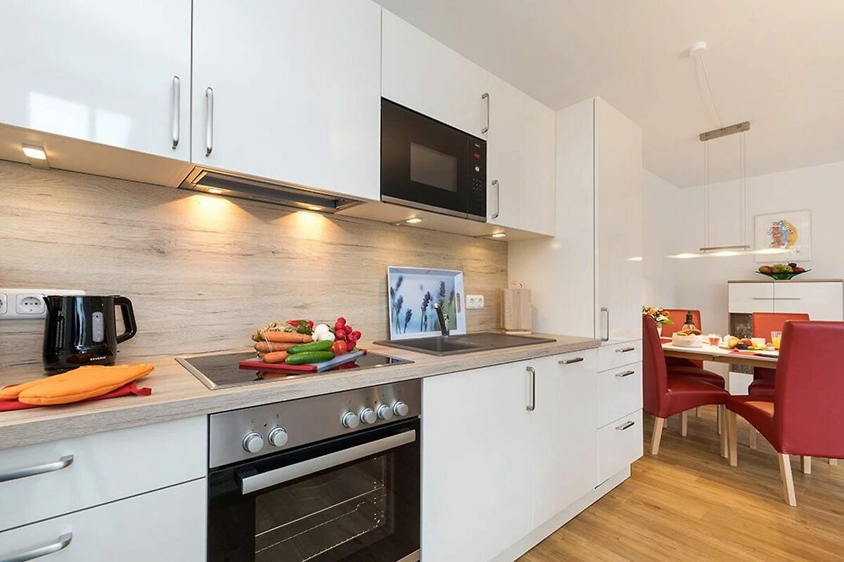 Auf grosszügigen 70 m² Wohnfläche bietet dieses Domizil ein aussergewöhnliches Platzangebot für zwei Personen. Das weitläufige, hell gestaltete Wohnzimmer bildet das Herzstück der Wohnung und bietet direkten Zugang zur privaten Dachterrasse, von der aus Sie das Treiben im Ort entspannt beobachten können. Die offene, voll ausgestattete Küche mit hochwertigen Geräten ermöglicht volle kulinarische Freiheit. Das separate Schlafzimmer ist mit einem komfortablen Doppelbett (180x200), einem Safe und einem geräumigen Schiebetürenschrank ausgestattet. Ein modernes Badezimmer mit bodengleicher Dusche und eigener Waschmaschine rundet das exklusive Angebot ab.