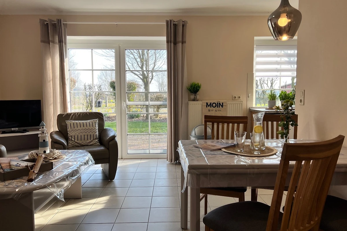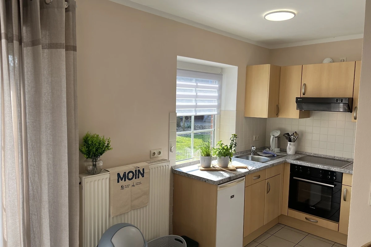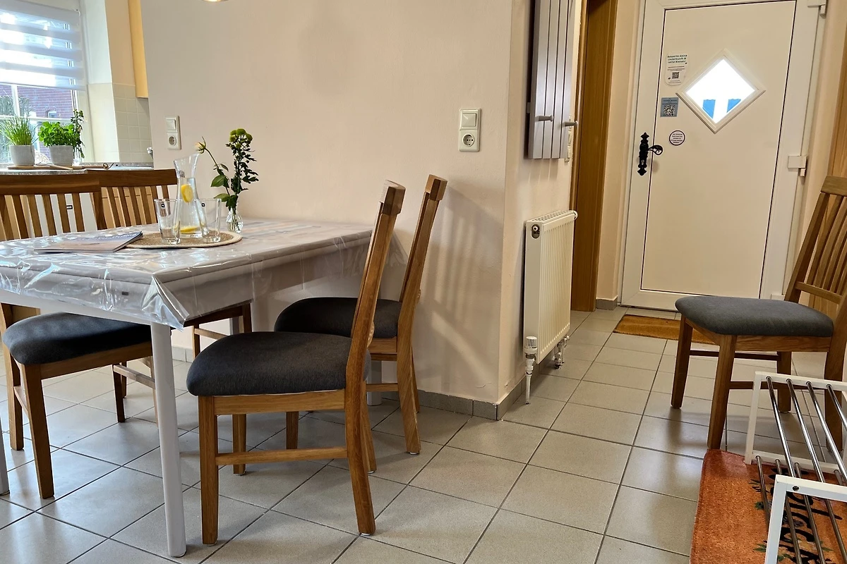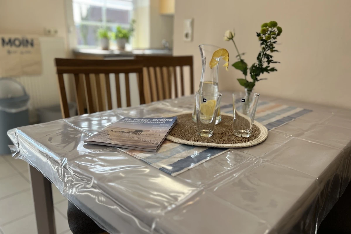 Willkommen im Ferienhof Rickerts in Vollerwiek – Ihr Rückzugsort für entspannte Urlaubstage an der Nordsee! Unsere 50 m² große Ferienwohnung bietet Platz für bis zu 4 Gäste und verfügt über zwei Schlafzimmer sowie ein Badezimmer. Im liebevoll eingerichteten Wohnbereich finden Sie bequeme Sitzmöglichkeiten und einen TV für gemütliche Abende. Die offene Küche ist mit einer Spülmaschine, Kaffeemaschine, Wasserkocher und allen wichtigen Geräten ausgestattet – ideal für gemeinsame Kochmomente. Ein Esstisch mit stilvoller Tischdekoration lädt zum Verweilen ein. Für Familien stehen ein Kinderbett und ein Hochstuhl bereit.