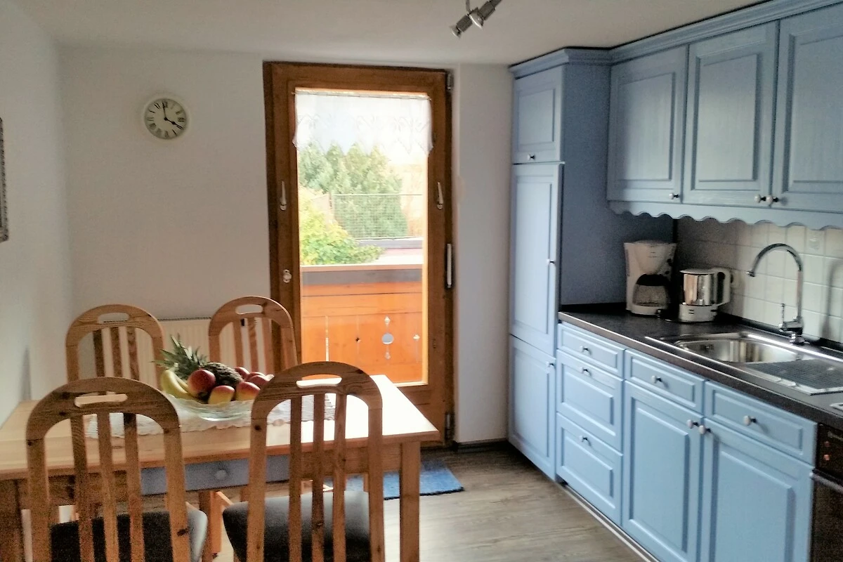 Die voll ausgestattete Küchenzeile inklusive Kaffeemaschine lädt dazu ein, regionale Spezialitäten selbst zuzubereiten. Ein gemütlicher Wohnbereich mit TV und kostenfreiem WLAN sorgt für Unterhaltung und Komfort,