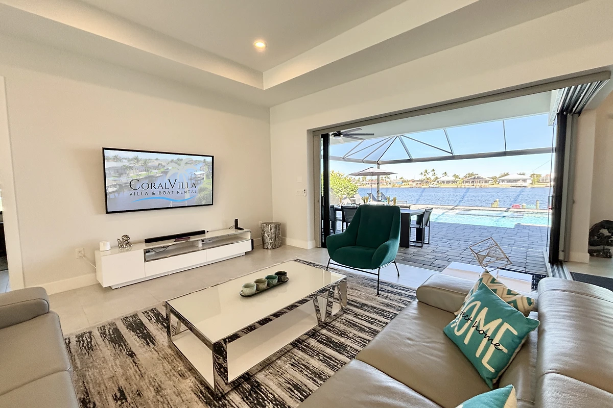 Erleben Sie Ihren Traumurlaub in der exklusiven Villa MAJADAMA, einem beeindruckenden Rückzugsort direkt am Lake Finisterre in Cape Coral. Die einzigartige Lage an einem Salzwassersee mit direktem Zugang zum Golf von Mexiko vereint absolute Ruhe, weite Panoramablicke und unvergessliches Bootsvergnügen. Eingebettet in eine gepflegte und ruhige Wohngegend bietet die Villa Privatsphäre und zugleich kurze Wege zu Restaurants, Einkaufsmöglichkeiten und Freizeitangeboten.
