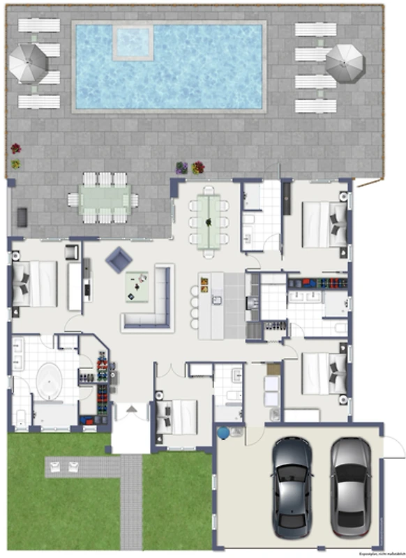 Der weitläufige Poolbereich ist ganztägig sonnig und lädt von morgens bis abends zum Schwimmen, Entspannen und Sonnenbaden ein – ein echtes Highlight für Sonnenliebhaber. Gleichzeitig bietet die überdachte Lanai jederzeit angenehmen Schatten, ohne den Blick auf den See zu versperren, und schafft so den perfekten Rückzugsort für entspannte Stunden. Der große Salzwasserpool eignet sich ideal zum Bahnenziehen, während der integrierte Whirlpool für zusätzliche Entspannung sorgt. Die Beheizung erfolgt über eine elektrische Wärmepumpe, sodass das Badevergnügen zu jeder Jahreszeit möglich ist. Für Familien mit kleinen Kindern kann auf Wunsch ein flexibles Schutzgitter installiert werden.
