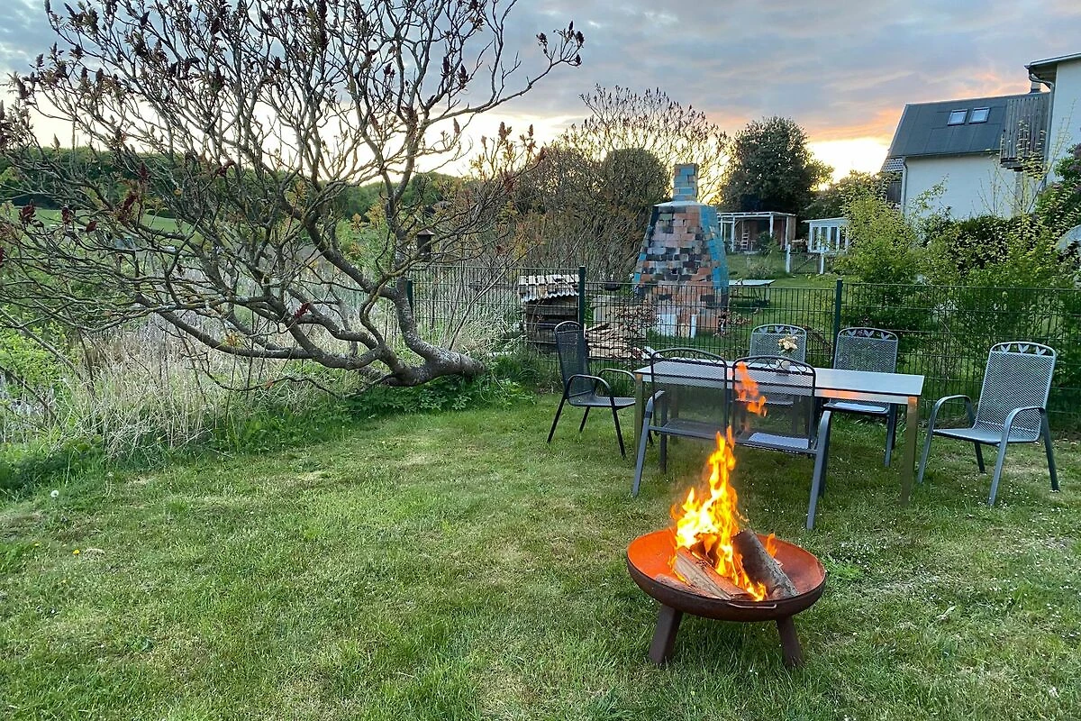 Draussen: Auf dem Grundstück befindet sich ein Grillplatz und eine Feuerschale. Dieser steht zur gemeinschaftlichen Benutzung zur Verfügung.
