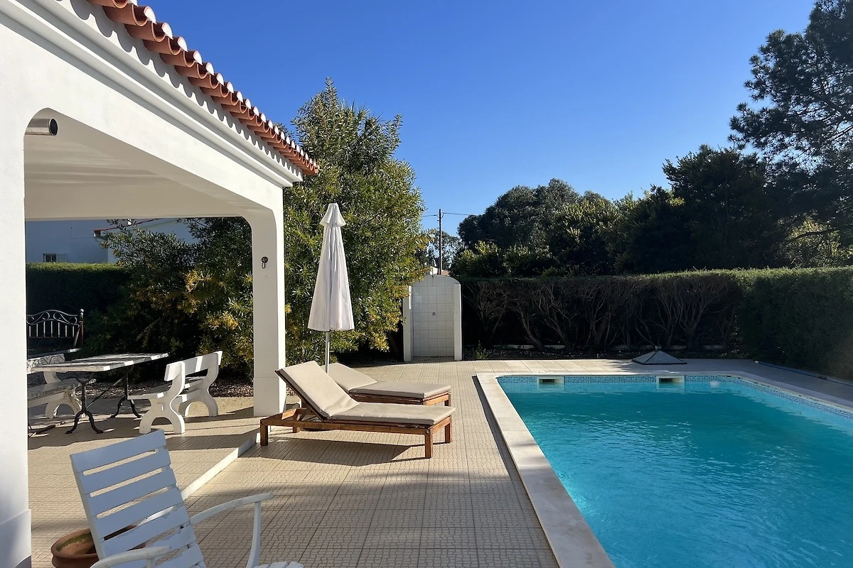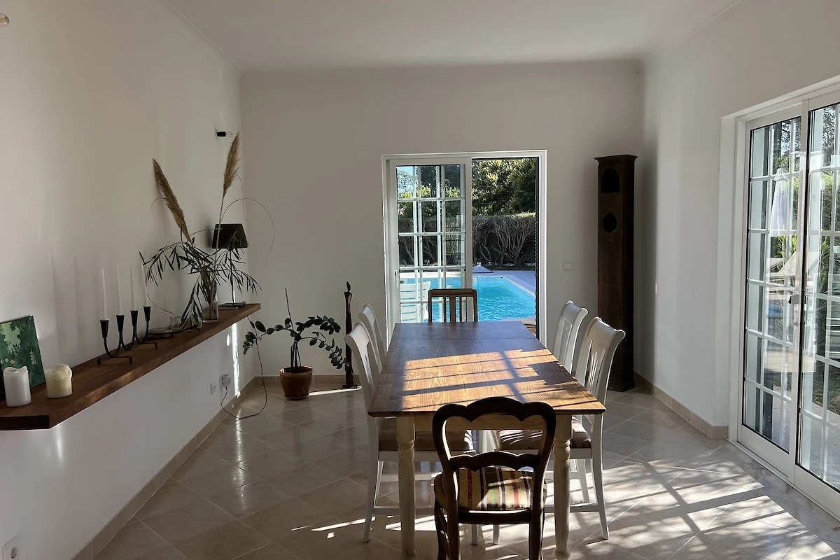 Willkommen in der Casa Lua in Aljezur – Ihrem Feriendomizil für entspannte Tage an der Algarve. Das großzügige Haus bietet auf 170 m² Wohnfläche Platz für bis zu 6 Gäste mit drei Schlafzimmern und zwei modernen Badezimmern. Die lichtdurchfluteten Räume sind liebevoll eingerichtet und laden zum Wohlfühlen ein. Im offenen Wohnbereich sorgt ein Kamin für behagliche Abende, während die voll ausgestattete Küche mit Geschirrspüler, Mikrowelle, Wasserkocher und Kaffeemaschine das Kochen zum Vergnügen macht. Genießen Sie gemeinsame Mahlzeiten auf der Terrasse mit Blick in den gepflegten Garten oder nutzen Sie den BBQ-Grill für gemütliche Grillabende. Der private Swimmingpool sorgt für Erfrischung an sonnigen Tagen und bequeme Sonnenliegen laden zum Entspannen ein. Für Ihren Komfort stehen Waschmaschine, Bügeleisen und Föhn bereit; Bettwäsche ist inklusive. Ein Parkplatz befindet sich direkt am Haus. Kostenloses WLAN und TV bieten Unterhaltung, während die ruhige Umgebung ein niedriges Allergiepotenzial garantiert. Casa Lua ist ein Nichtraucherhaus und eignet sich auch ideal für längere Aufenthalte. Hier erleben Sie Privatsphäre, Komfort und Erholung – perfekt für Familien oder Freunde, die das idyllische Aljezur entdecken möchten.