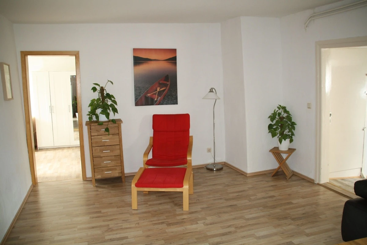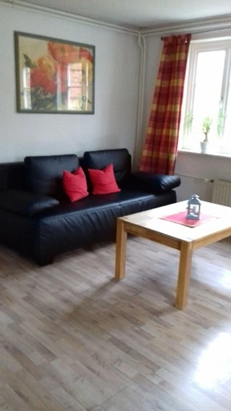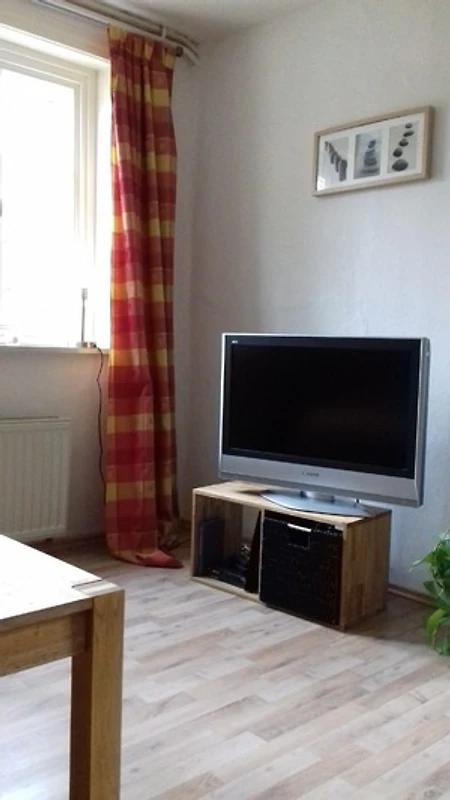 Über den Flur gelangen Sie in das grosse Wohnzimmer mit Farb-TV.Vom Wohnzimmer kommen Sie sowohl in die Küche als auch in das Schalfzimmer.