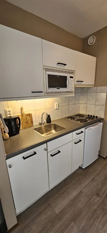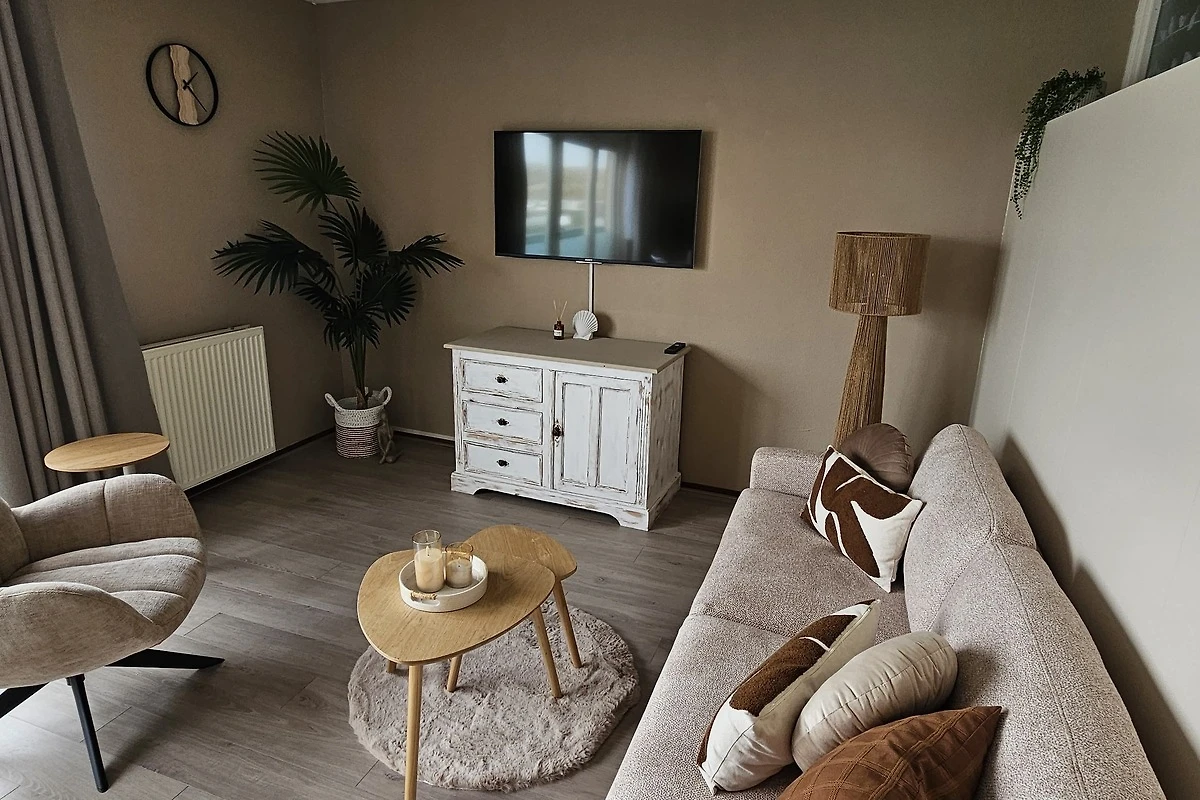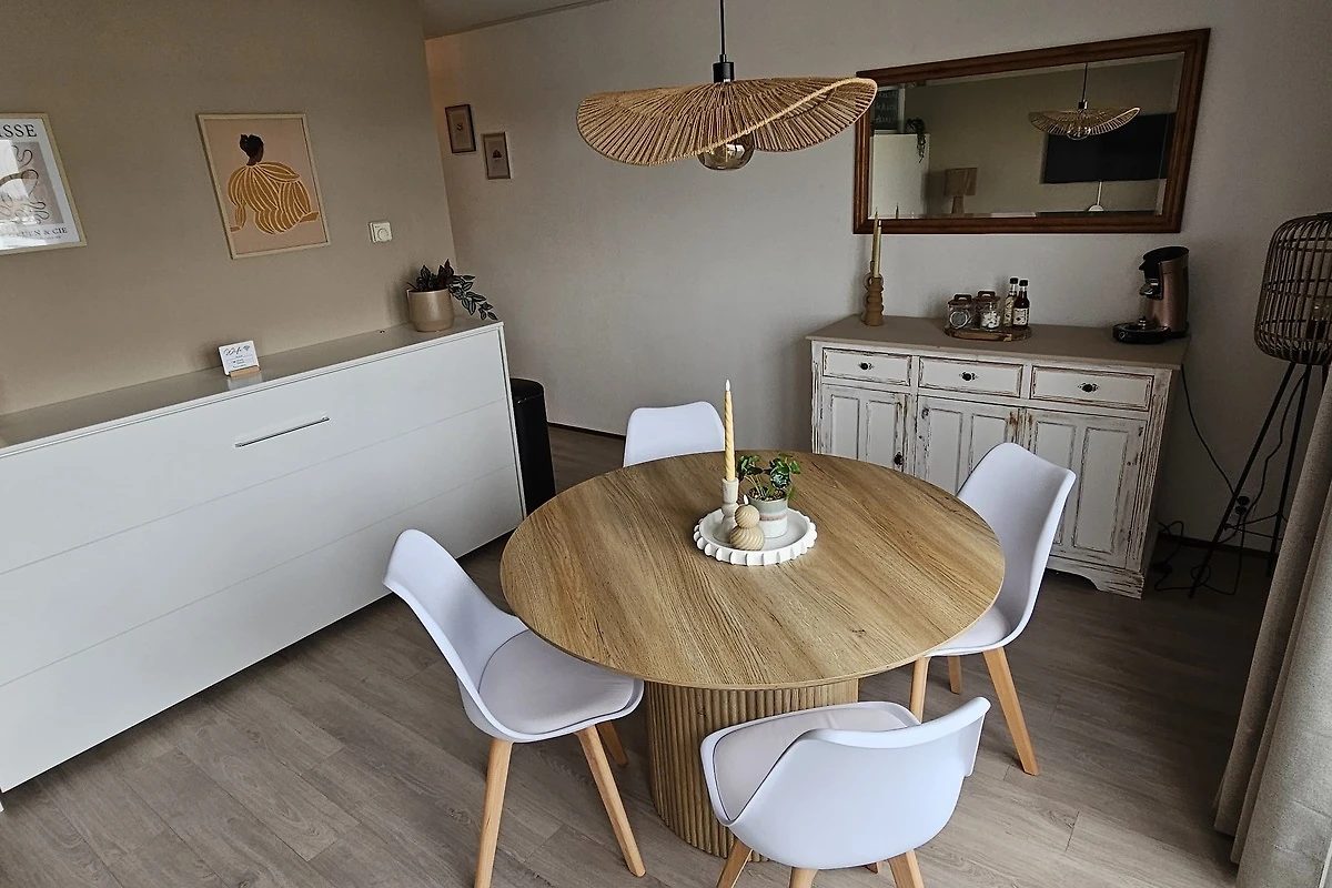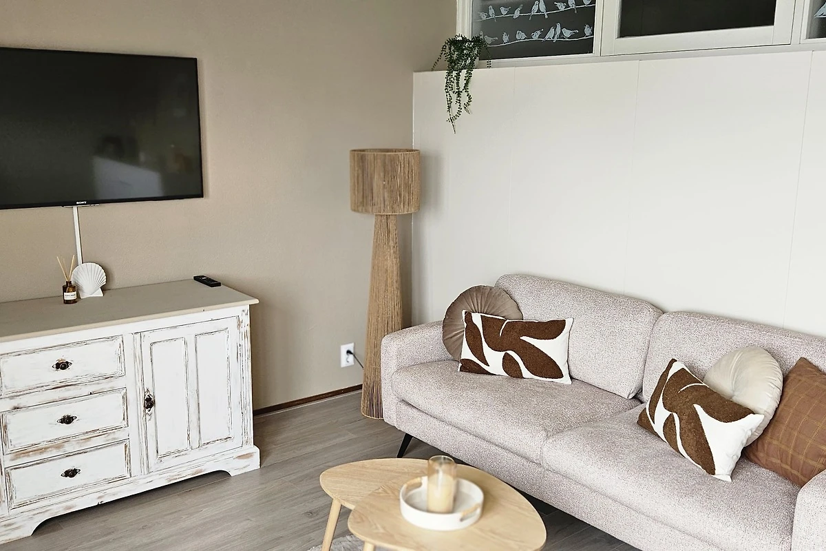 Das Apartment ist für maximal 3 Personen geeignet und verfügt über ein komfortables Doppel-Boxspringbett sowie ein komfortables Einzel-Klappbett im Wohnzimmer. Die helle und gemütliche Einrichtung sorgt dafür, dass du dich sofort wie zu Hause fühlst.