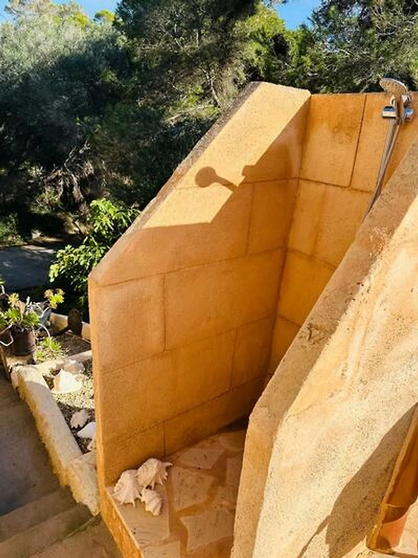 eine separate Außendusche mit Warmwasser.