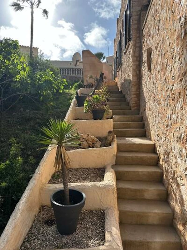 Die mallorquinische Casa liegt sehr ruhig am Ende einer Sackgasse und ist fußläufig in wenigen Schritten vom atemberaubenden Meer entfernt.