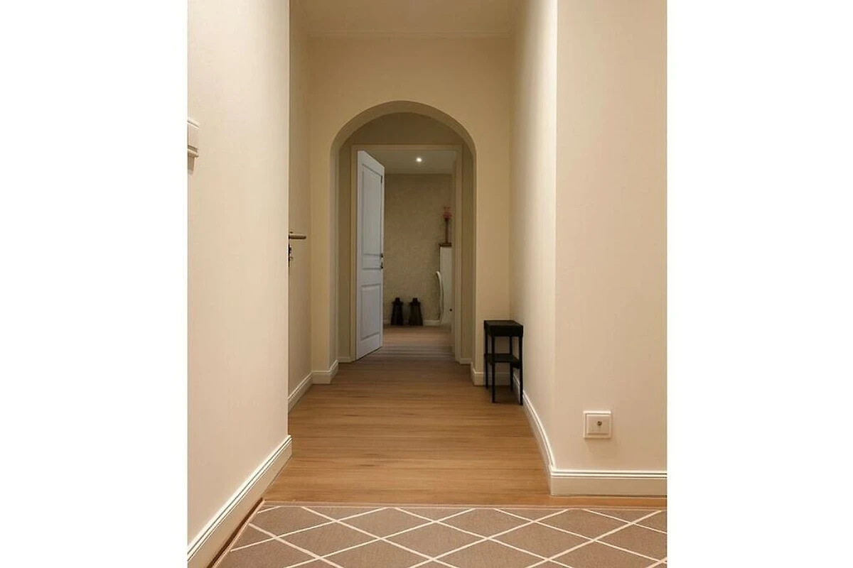 Die 135 m² große Ferienwohnung bietet zwei Schlafzimmer mit King-Size-Betten sowie ein stilvoll gestaltetes Badezimmer mit Dusche, Bidet, WC und einer Badewanne. Ergänzt wird die Wohnung durch ein separates, stilvoll eingerichtetes Esszimmer – ideal für gemeinsame Essen und entspannte Abende.