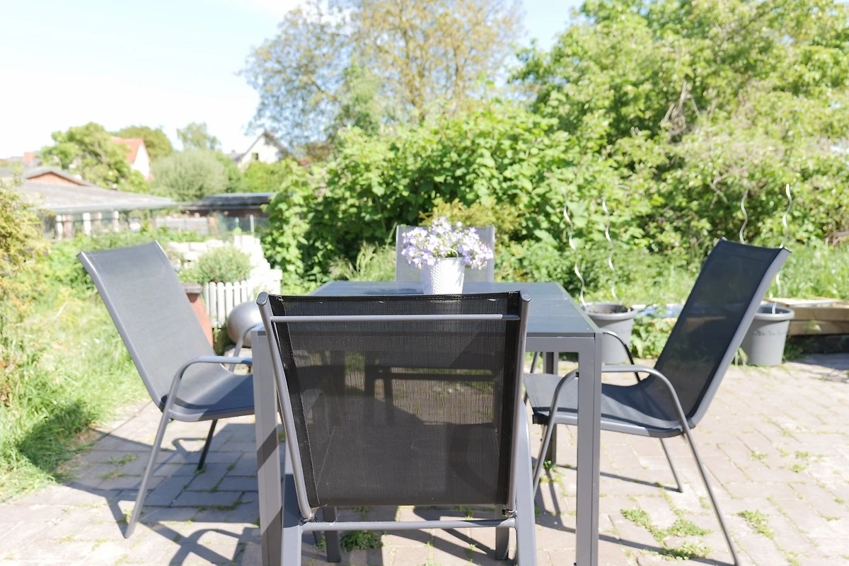 - Terrasse im Innenhof mit Sitzmöbel (Stühle + Tisch) und Grill