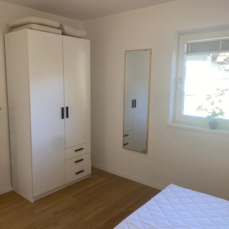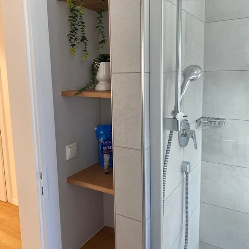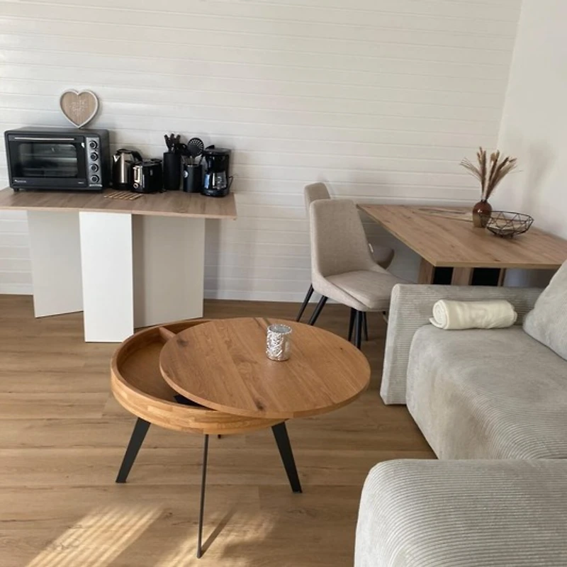 Das gemütliche Schlafzimmer lädt zu erholsamen Nächten ein, während das grosse Badezimmer mit moderner Dusche für frische Momente sorgt. Der offene Wohnraum vereint Küche, Ess- und Wohnbereich und schafft so eine helle und freundliche Umgebung, in der Sie sich sofort zuhause fühlen. Die Küche ist vollständig ausgestattet und bietet Ihnen alles, was Sie benötigen – statt eines klassischen Herds steht Ihnen ein moderner Minibackofen zur Verfügung, mit dem Sie genauso vielseitig braten, grillen und backen können wie mit einem herkömmlichen Backofen.