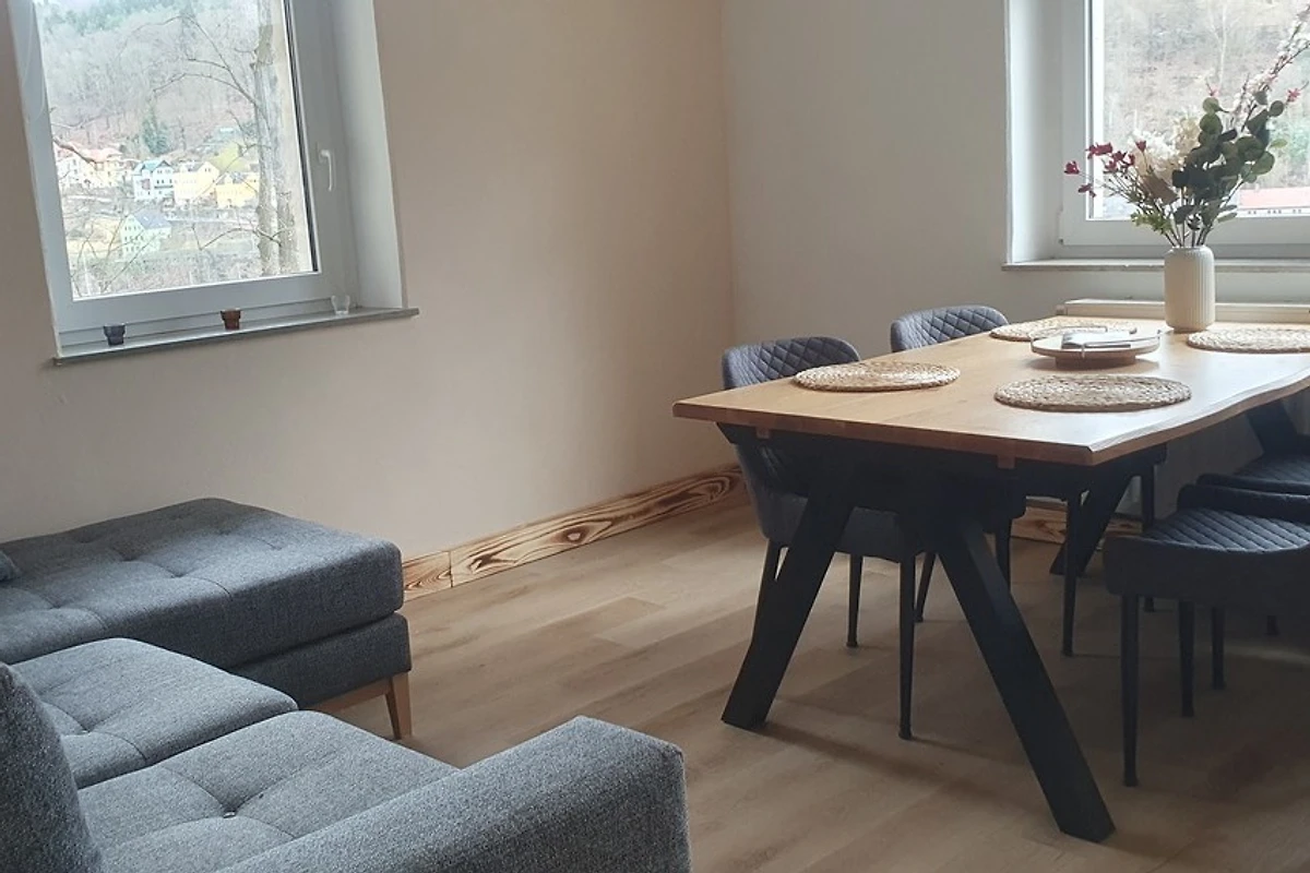 Schön, dass Sie da sind – ich freue mich sehr, Sie als meine Gäste begrüßen zu dürfen. Die Wohnung liegt am Fuße des Liliensteins und ist nach einem kurzen Anstieg von 50m erreichbar. Hier bietet sich Ihnen vom Balkon aus ein wunderschöner Blick über die Stadt Königstein bis hin zur beeindruckenden Festung Königstein.