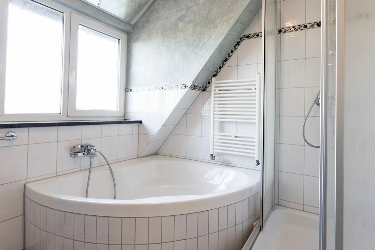 Geniessen Sie den Komfort von zwei Badezimmern: Das grössere, helle Hauptbad ist mit einer Dusche sowie einer Badewanne ausgestattet, ideal für einen entspannten Ausklang des Tages. Das zweite Badezimmer verfügt ebenfalls über eine Dusche.