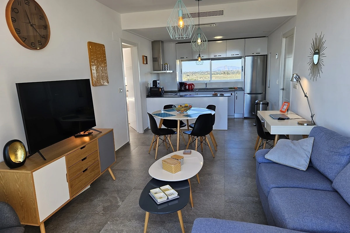 Willkommen in der Ferienwohnung Familienurlaub Guardamar del Segura – Ihr perfektes Urlaubszuhause an der sonnigen Costa Blanca! Die großzügige Wohnung bietet auf 80 m² Platz für bis zu 5 Gäste und verfügt über zwei Schlafzimmer sowie ein Badezimmer. Beginnen Sie den Tag mit einem Frühstück auf dem Balkon oder entspannen Sie auf der schattigen Terrasse, während Sie den Blick auf das Meer genießen. Nach einem erfrischenden Bad im gepflegten Swimmingpool steht Ihnen ein eigener Parkplatz zur Verfügung, sodass Sie jederzeit flexibel bleiben.