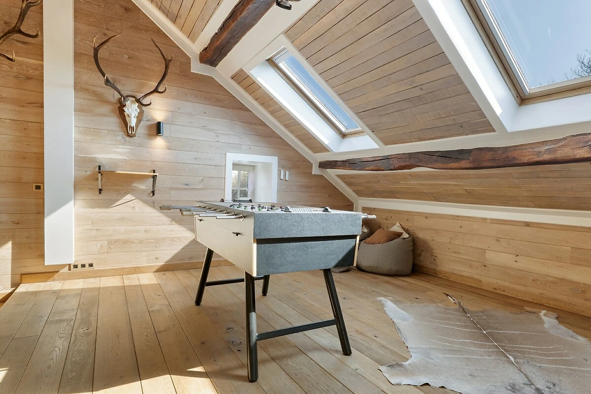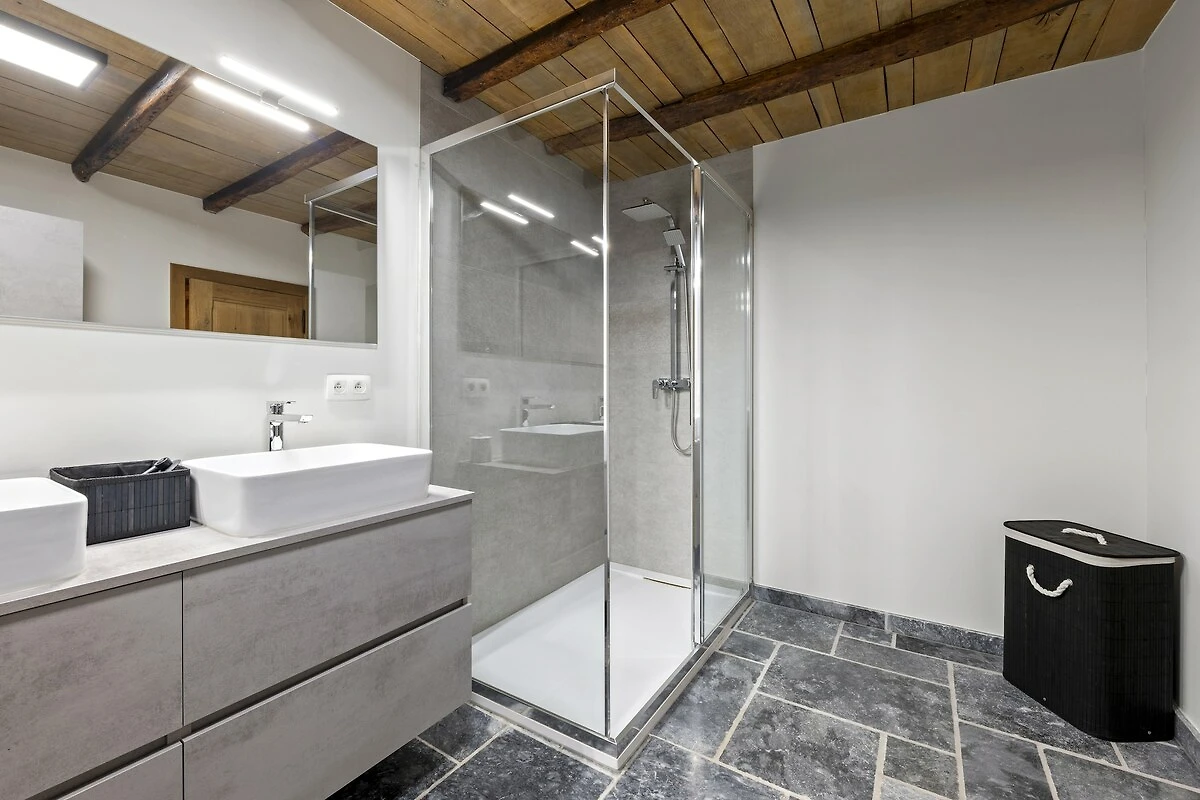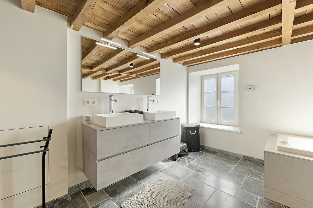 Willkommen in diesem wunderschön ausgestatteten Landhaus in Aywaille, geeignet für 9 Gäste und ideal für Familien oder Freundesgruppen, die Luxus, Raum und Natur verbinden möchten. Im Erdgeschoss befinden sich eine großzügige Eingangshalle, ein gemütliches Wohnzimmer, eine voll ausgestattete Küche, ein separates Esszimmer, ein praktischer Hauswirtschaftsraum sowie ein separates WC. Im ersten Stock gibt es ein komfortables Schlafzimmer und zwei stilvolle Badezimmer: eines mit Doppelwaschbecken, ebenerdiger Dusche, Waschmaschine und Trockner sowie eines mit Badewanne, ebenerdiger Dusche, Doppelwaschbecken und WC, zusätzlich zu einem weiteren separaten WC. Im zweiten Stock befinden sich vier weitere Schlafzimmer, sodass jeder ausreichend Privatsphäre genießt.