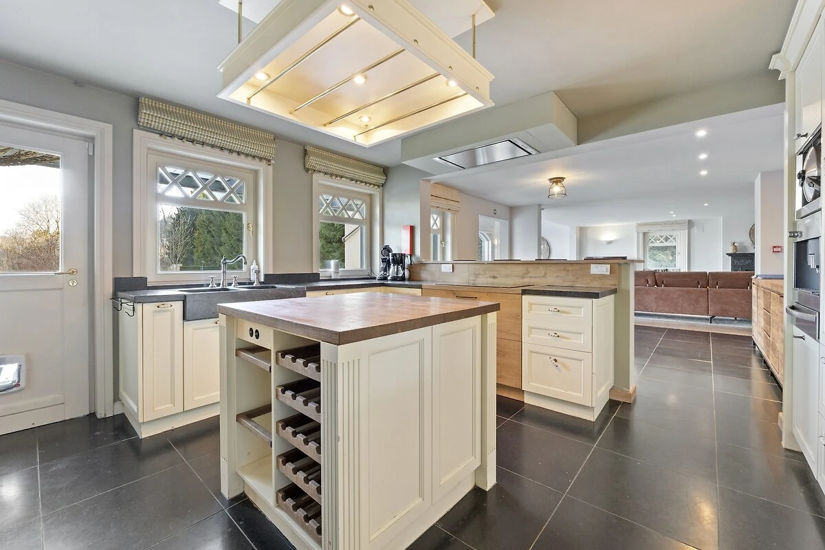 Willkommen in diesem wunderschön ausgestatteten Landhaus in Manhay mit Pool, geeignet für 10 Gäste. Hier genießen Sie Raum, Komfort und Luxus in einer warmen Ardennen-Atmosphäre. Im Erdgeschoss befinden sich ein gemütliches Wohnzimmer mit TV und dekorativem Kamin, eine voll ausgestattete Küche, ein großzügiges Esszimmer mit großem Tisch, eine Bibliothek mit Sitzecke, ein separates WC, ein Hauswirtschaftsraum mit Bügeleisen und Bügelbrett, eine Garage sowie ein Fahrradabstellraum.