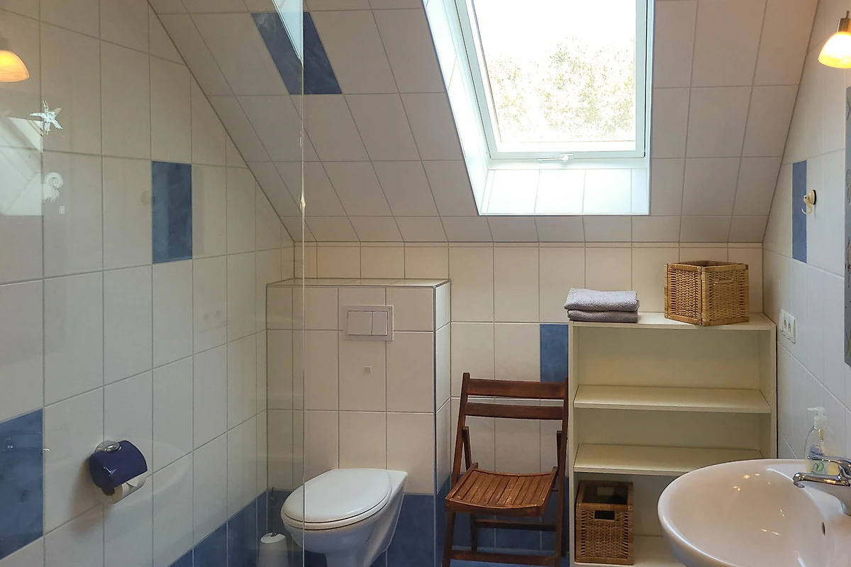 Das grosse Duschbad im Obergeschoss verfügt über einen fussbodengleichen Zugang. Das gesamte Haus ist mit Fussbodenheizung ausgestattet und bietet dadurch ganzjährigen Wohnkomfort.