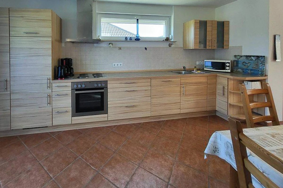 Im Erdgeschoss erwartet Sie der helle Wohn- und Essbereich mit komplett ausgestatteter Küche. Hier wird gemeinsames Kochen zum Vergnügen.