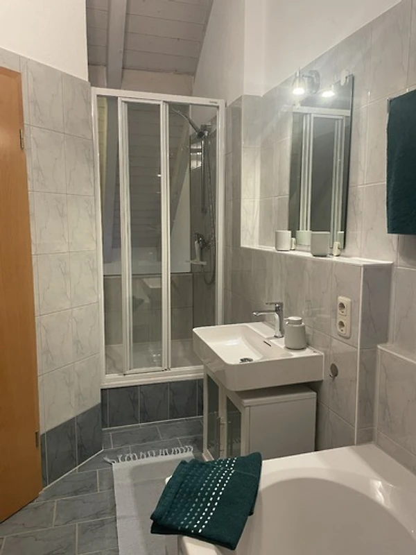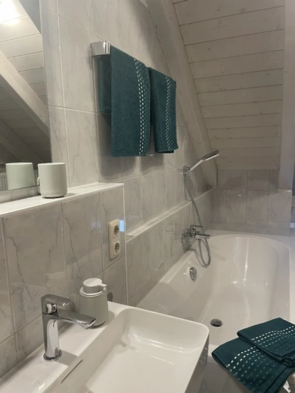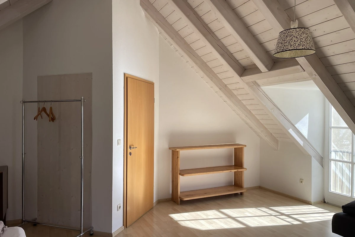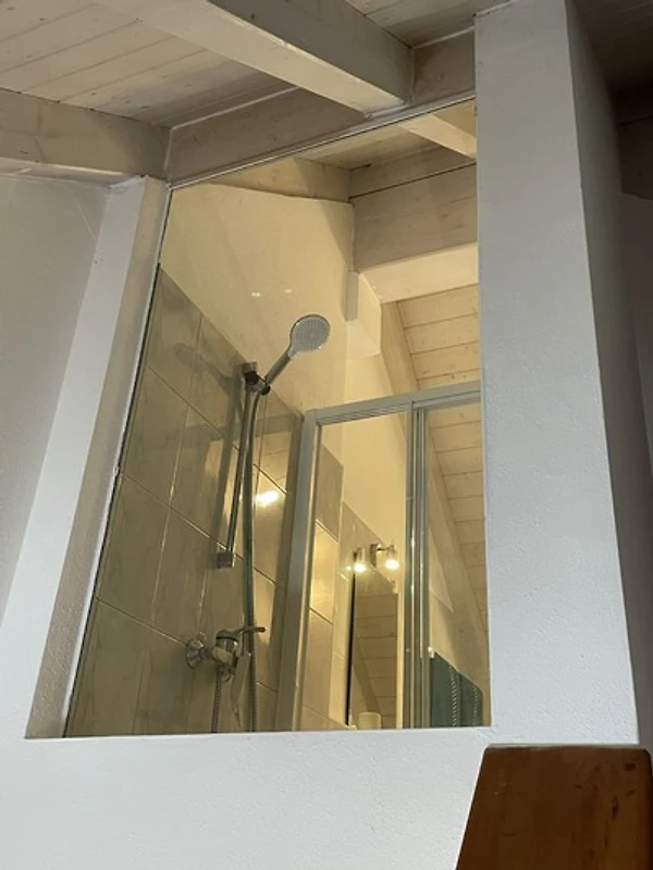 Über eine Treppe gelangen Sie in das obere Stockwerk. Dort befindet sich ein grosszügiges Badezimmer, ausgestattet mit Dusche/ Badewanne und WC. Im grossen, hellen Schlafzimmer ist ein Doppelbett (180 cm) und ein für Kinder geeignetes Ausziehsofa vorhanden.