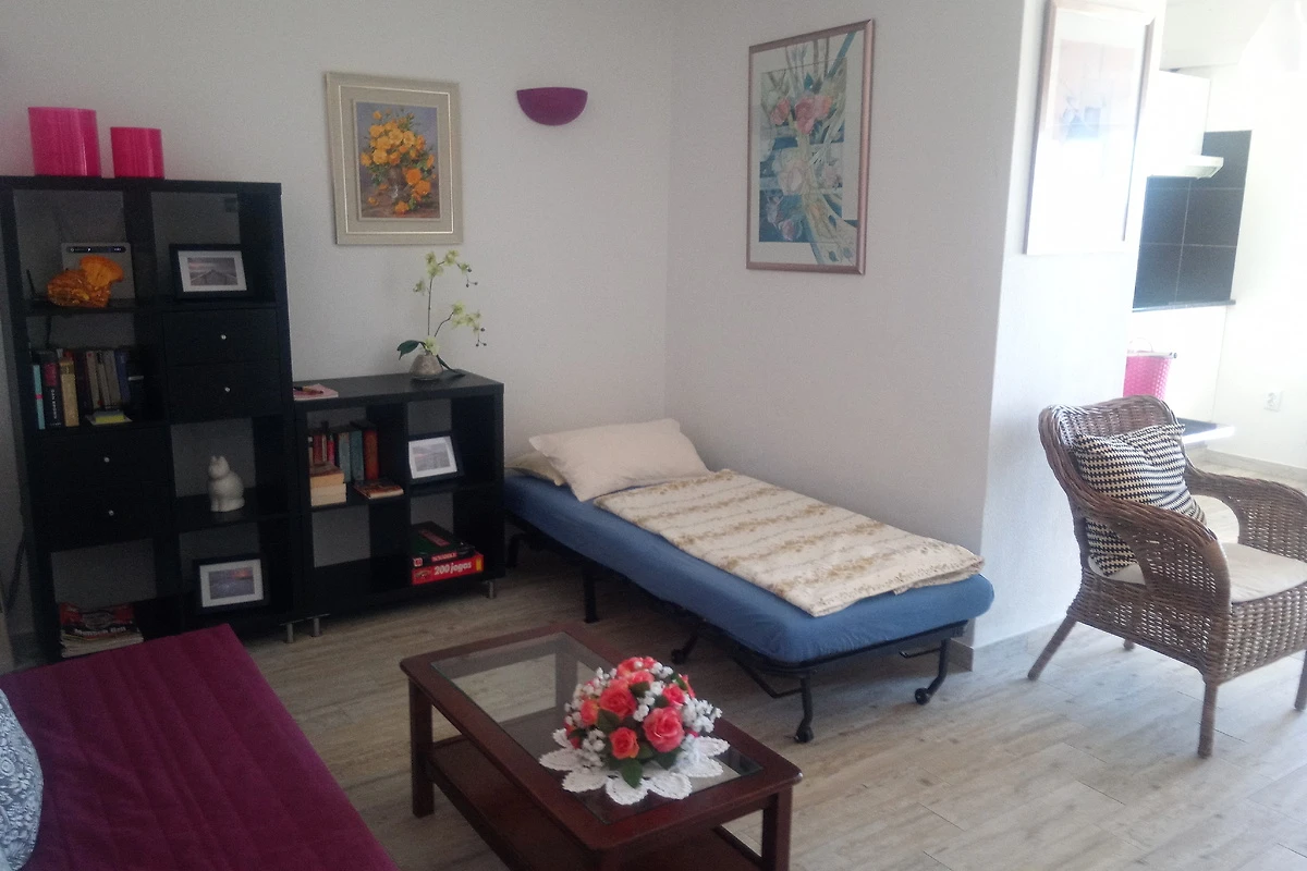 Das Apartment befindet sich im ersten Stock einer früheren Hotelanlage. Das Apartment ist über Aufzug erreichbar. Vor dem Haus sind kostenlose Parkplätze verfügbar. Der Strand mit 2 Restaurants ist 200m entfernt. Bis zur Altstadt sind es 2km.