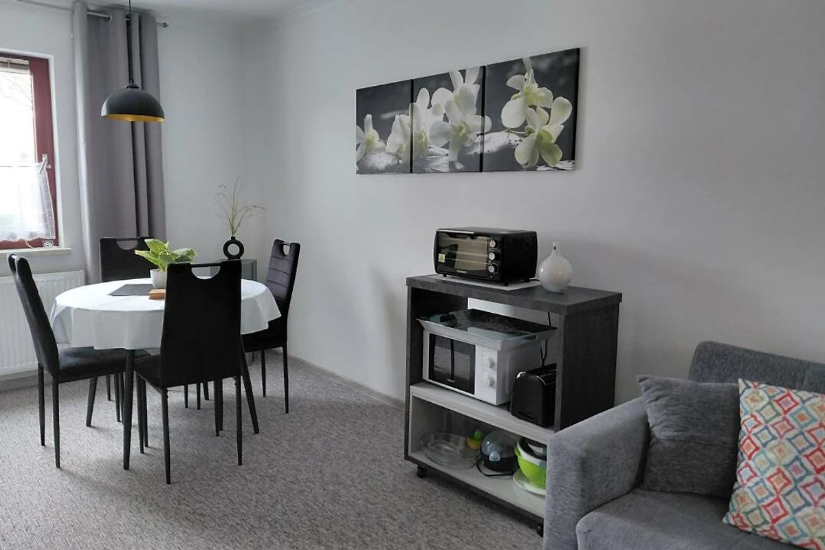 Ferienwohnung in Zirchow auf Usedom – Unsere gemütliche Ferienwohnung liegt im ruhigen Ort Zirchow, nur wenige Minuten von der schönen Ostseeküste entfernt. Zirchow ist bekannt für seine idyllische Lage und die Nähe zur Inselhauptstadt Heringsdorf, die mit ihren langen Sandstränden und vielfältigen Freizeitmöglichkeiten ein beliebtes Ziel für Erholungssuchende ist. Mit einer Fläche von ca. 40 m² bietet die Wohnung Platz für bis zu 3 Personen und eignet sich ideal für Paare oder kleine Familien. Die Unterkunft verfügt über ein Schlafzimmer mit einem komfortablen Doppelbett sowie ein Wohnzimmer, das mit einer Schlafcouch ausgestattet ist – perfekt für eine dritte Person. Die ruhige Wohnung lädt mit einer schönen Terrasse und angrenzendem Garten zum Entspannen ein. Weiter bietet Sie Ihnen zwei separate Badezimmer: eines direkt abgehend vom Schlafzimmer, das andere vom Wohnzimmer erreichbar. Beide Bäder sind mit modernen Duschen und WC ausgestattet und bieten Ihnen genügend Platz und Komfort. Die Küche ermöglicht Ihnen, Ihre Mahlzeiten ganz nach Wunsch zuzubereiten. Darüber hinaus steht Ihnen kostenfreies WLAN zur Verfügung, sodass Sie auch während Ihres Urlaubs stets verbunden bleiben können. Bettwäsche und Handtücher sind bereits im Mietpreis enthalten, sodass Sie sich um nichts weiter kümmern müssen. Bitte beachten Sie, dass Haustiere in unserer Ferienwohnung leider nicht gestattet sind. Wir freuen uns darauf, Sie als unsere Gäste begrüssen zu dürfen.