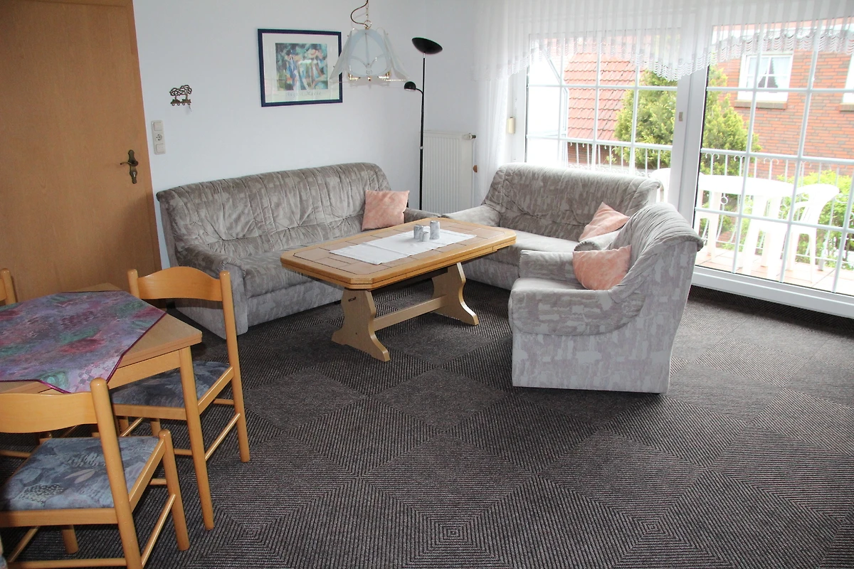 Gemütlich eingerichtete Ferienwohnung mit Balkon an der Nordseeküste.