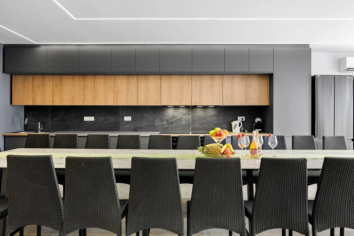 Willkommen in der Villa Residence, einer neuen luxuriösen Villa im Herzen von Medulin, die mit besonderer Sorgfalt entworfen wurde, um größeren Gruppen von bis zu 45 Personen höchsten Komfort zu bieten.