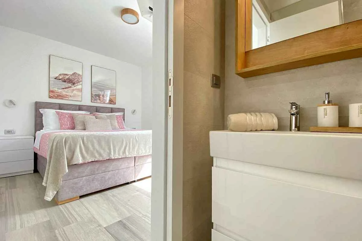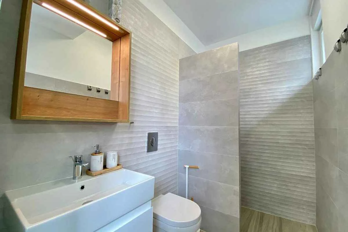 Einkauf 300 m, Restaurant 200 m, Ortszentrum 550 m. Im Sommer: Bademöglichkeit (Strand 600 m in Krk).