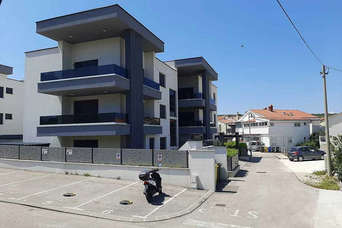 Krk. Der Vermieter wohnt nicht im Haus oder auf dem Grundstück. Die Zufahrt erfolgt direkt von der Hauptstrasse (asphaltiert). Parkplatz (für 1 Pkw) auf dem Grundstück.