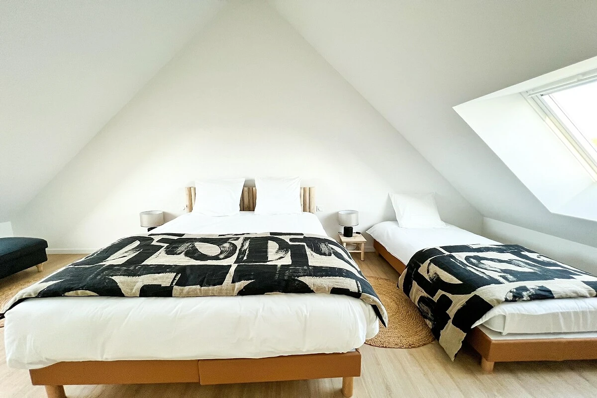 Ein Schlafzimmer mit Doppelbett 160 x 200 cm und einem Einzelbett 90 x 190 cm, ideal für ein Kind