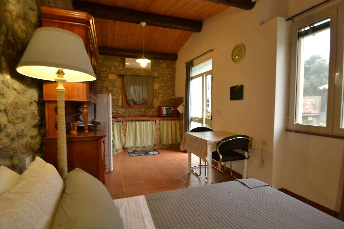Die Ferienwohnung in Sant'Antioco, auf der gleichnamigen Halbinsel, befindet sich auf einem Grundstück von ca. 8000,00 qm. Sie besteht aus einem Einzelzimmer, in dem sich die Küche und der Schlafbereich befinden, gut beleuchtet und belüftet. Eine Tür führt zum Badezimmer mit allen Serviceleistungen. Im Innenhof, wie die Fotos hinter dem Parkplatz zeigen, gibt es eine grüne Liegewiese mit der Möglichkeit, die Sonne zu genießen.
