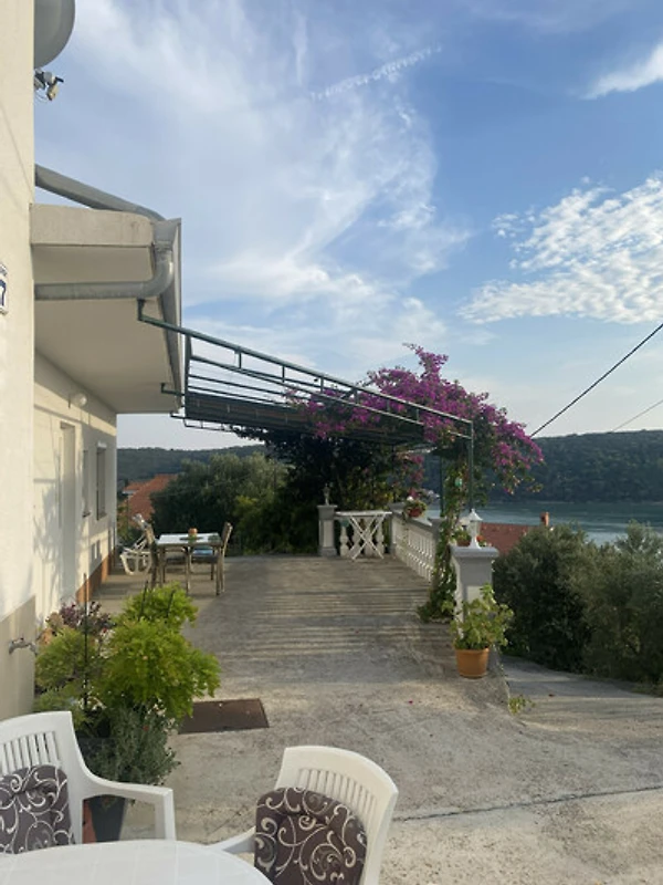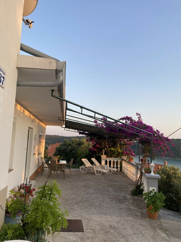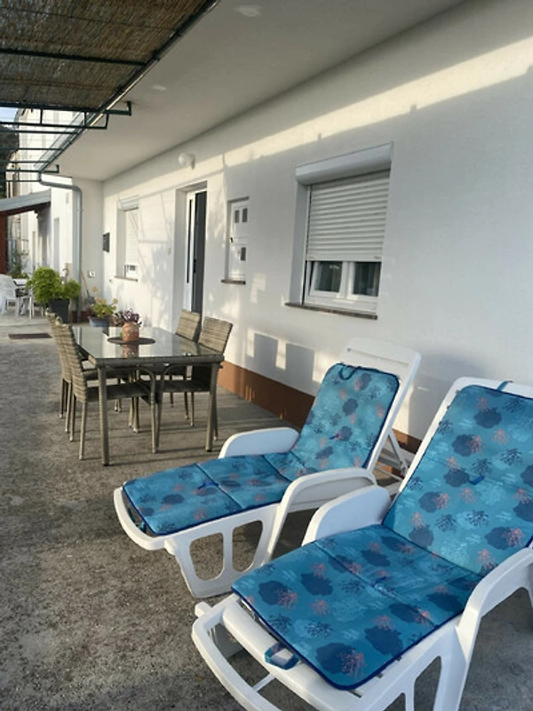 Das absolute Highlight der Wohnung ist die grosse private Terrasse mit wunderschönem Meerblick. Es ist der perfekte Ort, um den Morgenkaffee zu geniessen, lange Sommerabendessen zu verbringen oder bei Sonnenuntergang ein Glas Wein zu trinken und dabei die Adria zu überblicken.