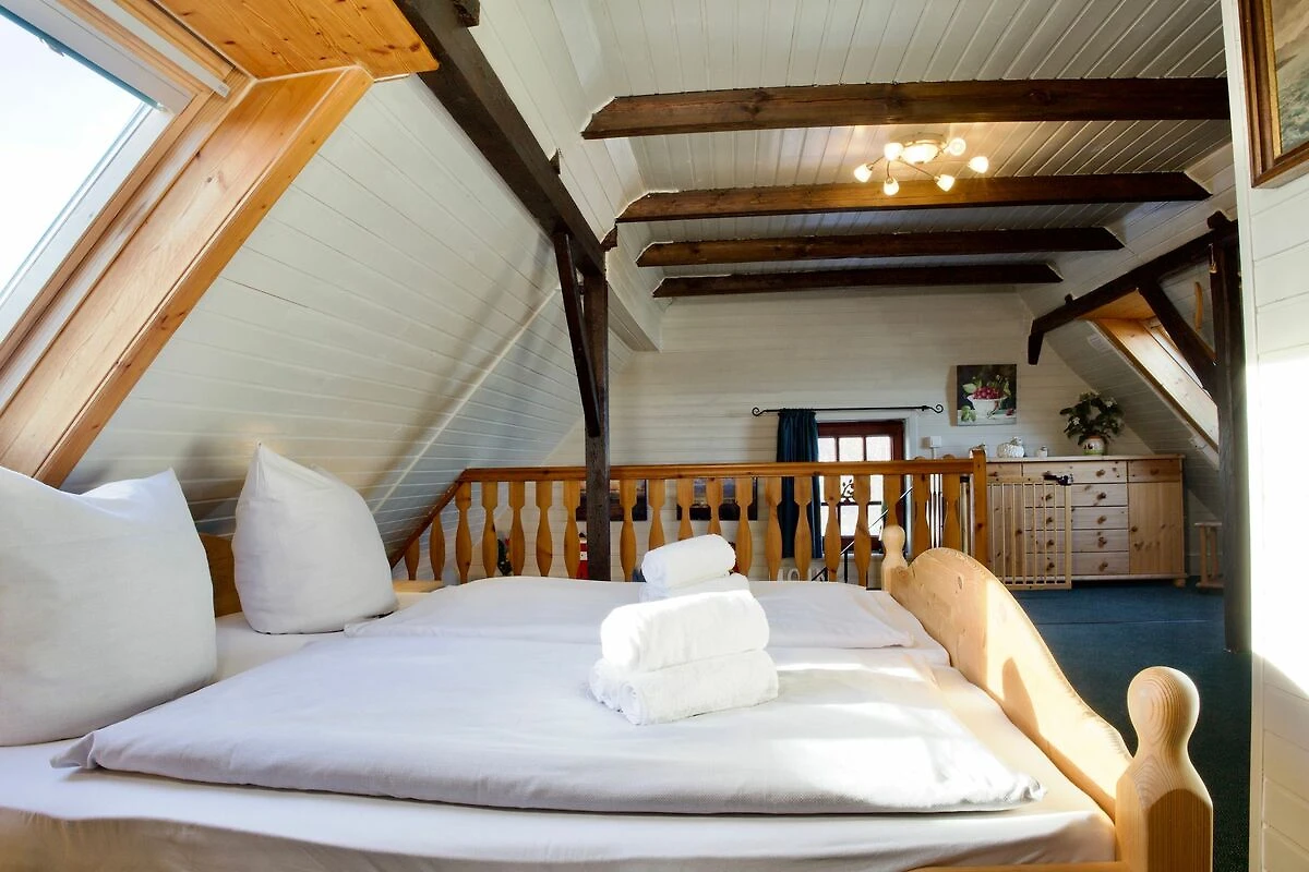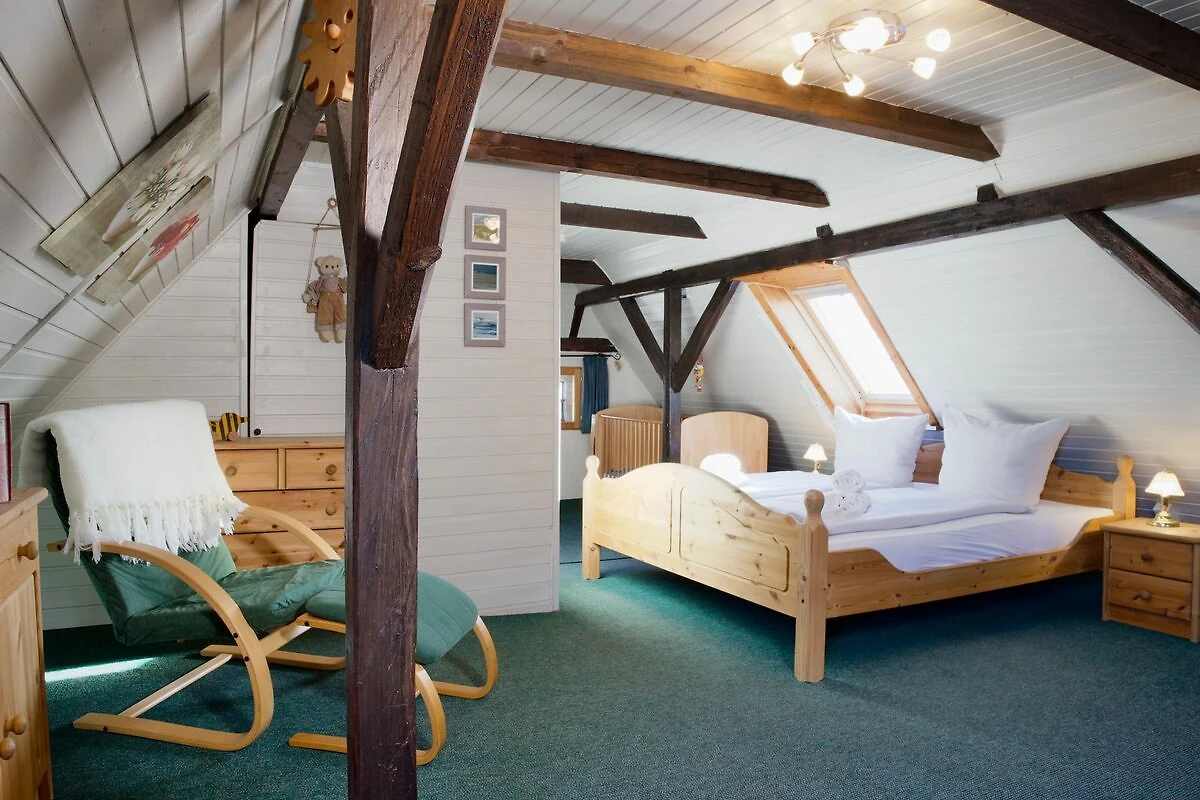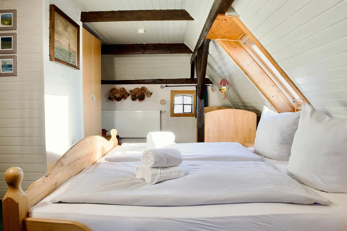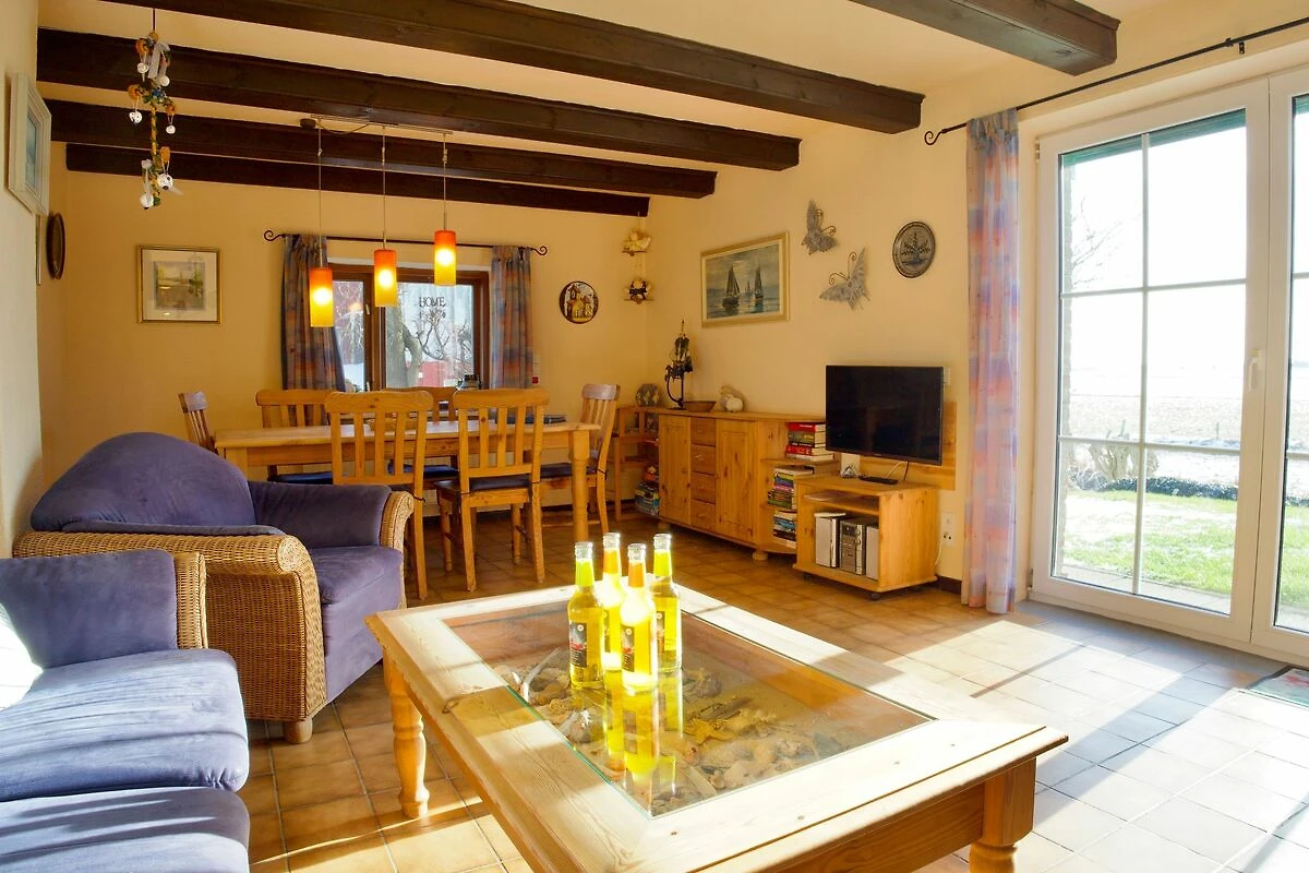 Das Ferienhaus Sabine bietet Platz für bis zu drei Personen und überzeugt durch seine offene Raumgestaltung sowie die warme Ausstrahlung natürlicher Materialien. Holzbalkendecken und sichtbare Stützbalken prägen beide Etagen und verleihen dem Haus einen gemütlichen, ursprünglichen Charakter. Auch Ihre Vierbeiner sind hier herzlich willkommen.